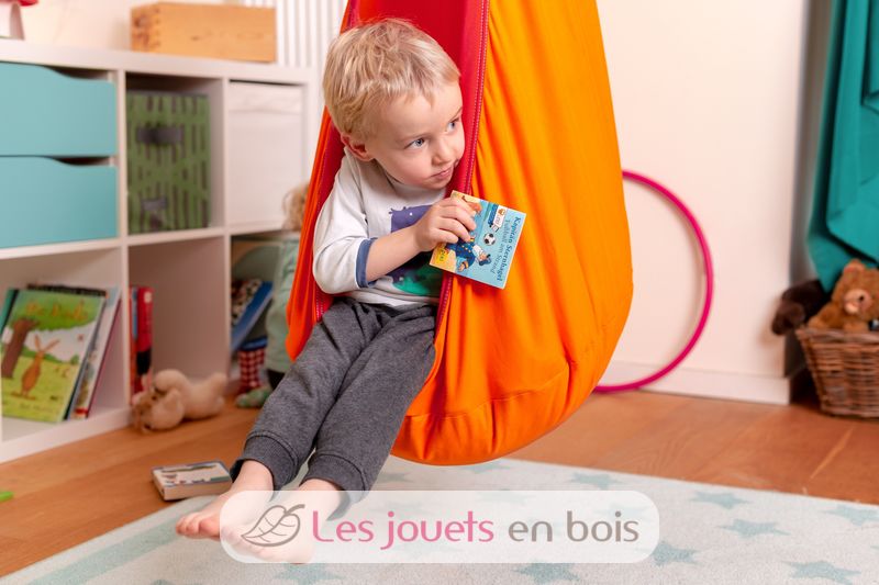 Tessuto in cotone biologico, il nido-amaca Colorigolo per bambini è un morbido bozzolo per ricaricare le batterie. In giardino o in casa, il nido-hamac offre ai bambini una parentesi di tranquillità e stimola le loro capacità motorie. Ma soprattutto garantisce un sacco di risate!