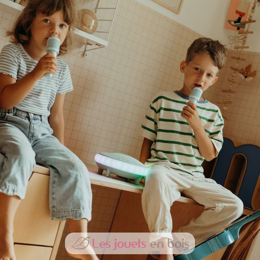 Rendi ogni festa un evento indimenticabile con Kidykaraoke, l'altoparlante portatile per karaoke che combina potenti effetti sonori e luminosi. Dotato di due microfoni wireless e una serie di divertenti funzioni, questo altoparlante trasforma qualsiasi locale in un palcoscenico per spettacoli. Con il suo altoparlante da 40 W e vari effetti sonori e luminosi, Kidykaraoke è il compagno ideale per le tue feste, sia che tu sia a casa o in viaggio.