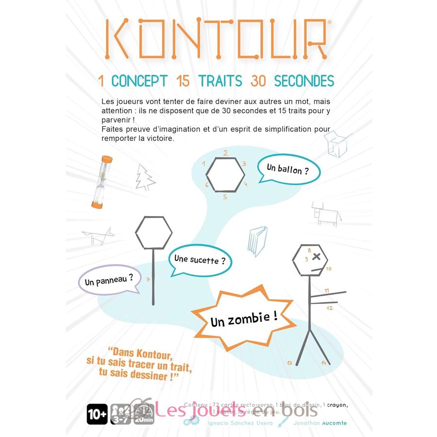 Contenuto: scatola di metallo, 72 carte, 1 blocco da disegno, 1 matita, 1 clessidra, regole del gioco. Da 3 a 7 giocatori, a partire da 10 anni. Durata: 20 min.