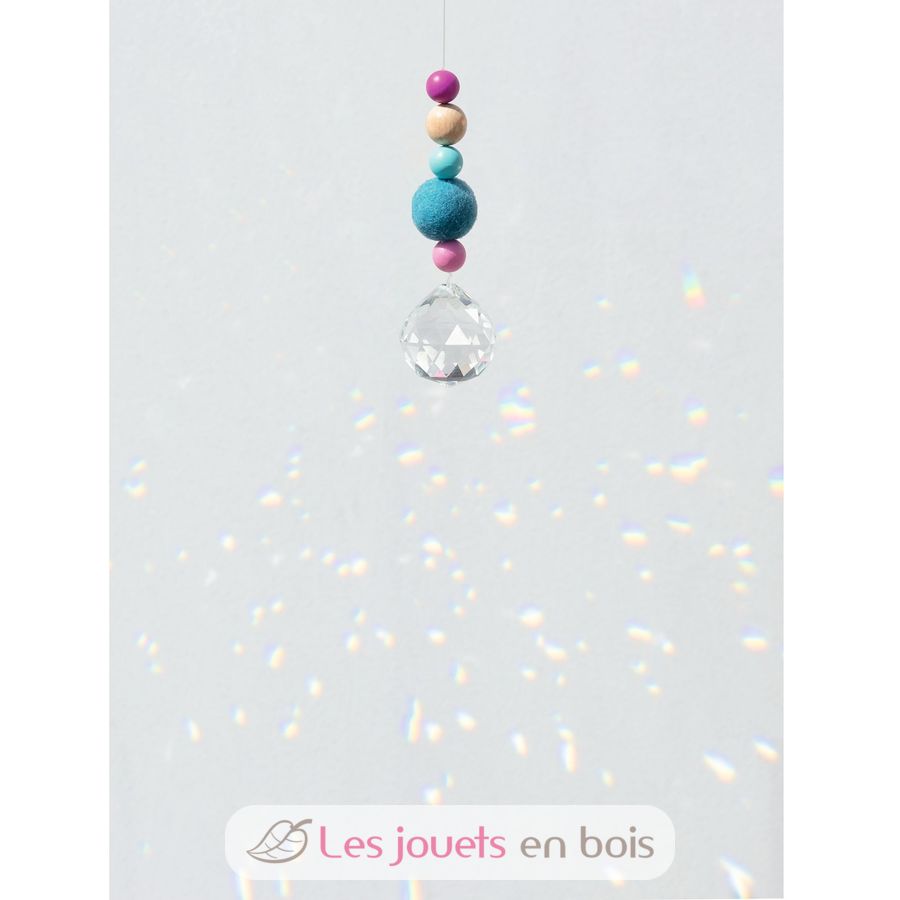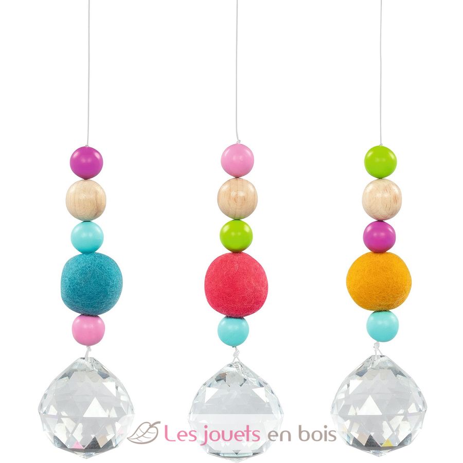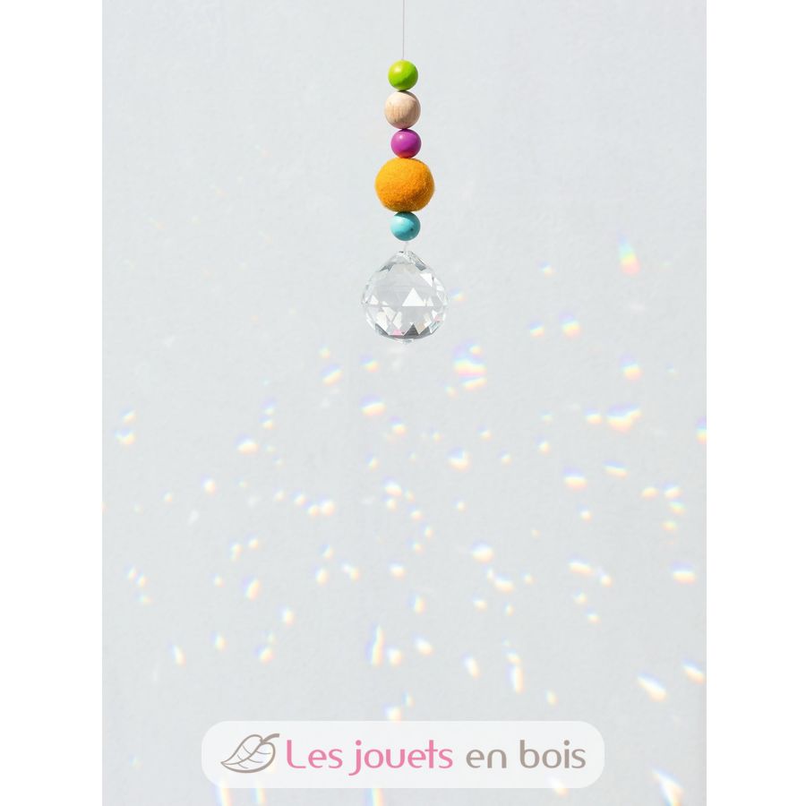 - Prisma di vetro con cordino in nylon per appenderlo, decorato con perline di legno e lana (colori casuali).