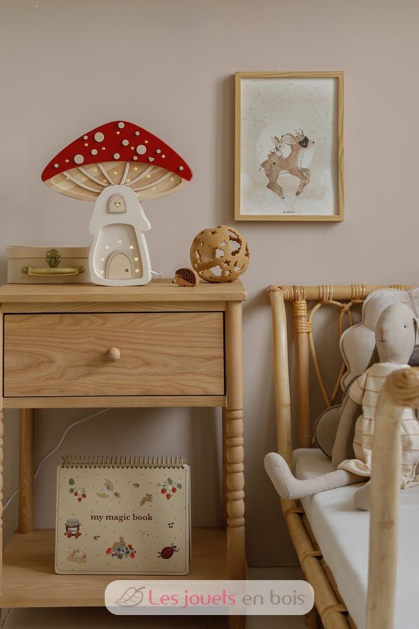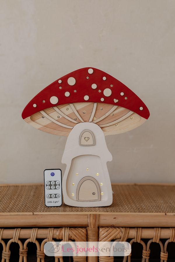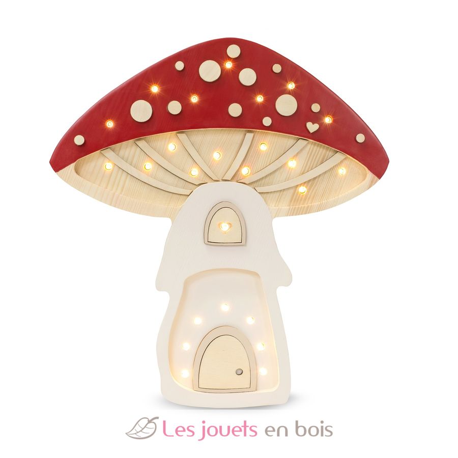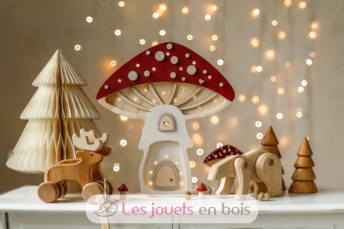 Adorabile lampada notturna in legno per bambini a forma di funghi.