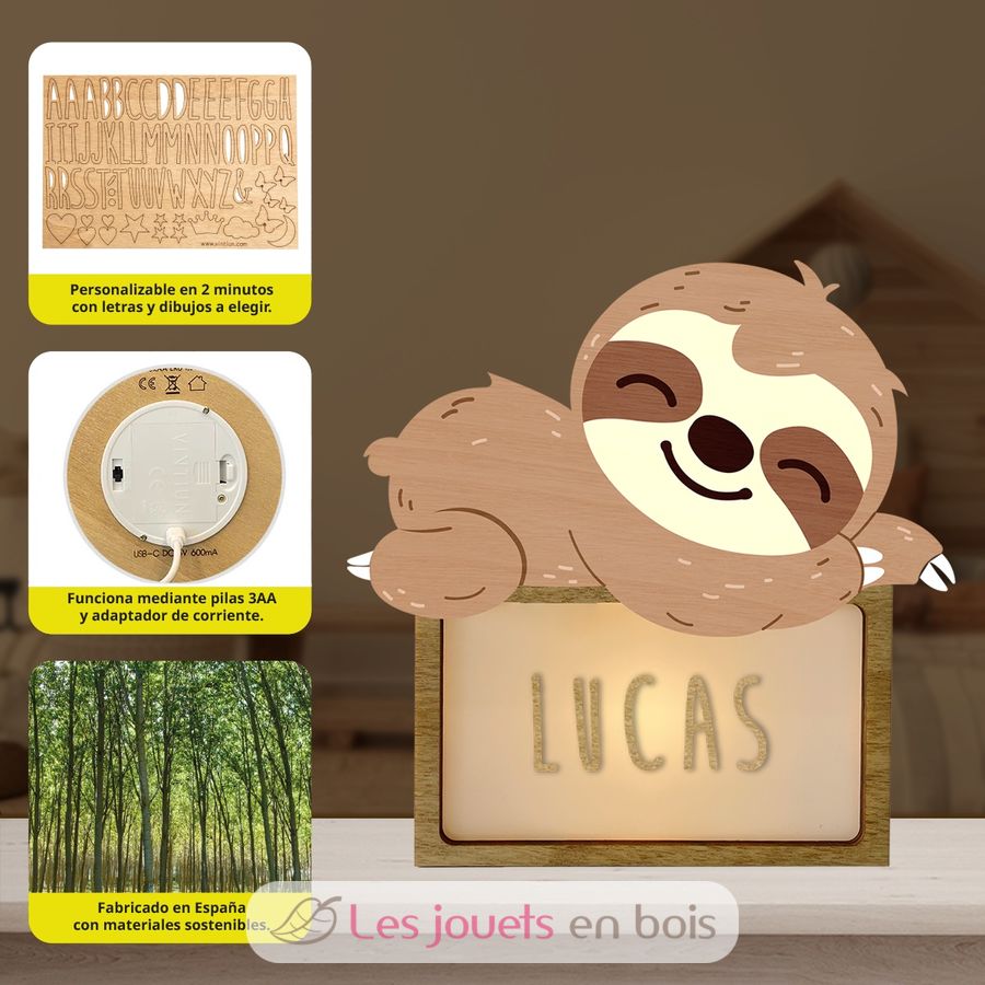 Il kit include: 1 lampada in legno e metacrilato con illuminazione a LED; 1 foglio di lettere e simboli in legno autoadesivi. Dimensioni: 16,7 x 16,9 x 6 cm. Area personalizzabile: 11 x 6 cm.