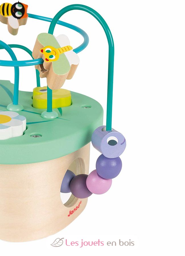 Questo giocattolo in legno ad anello con un design molto simile a una molla farà la gioia del vostro bambino! Dotato di 2 fili con farfalle, bruchi e api da far scorrere e 3 pezzi di puzzle da inserire (fiore, bruco, coccinella), aiuterà i più piccoli a lavorare sulla motricità fine.