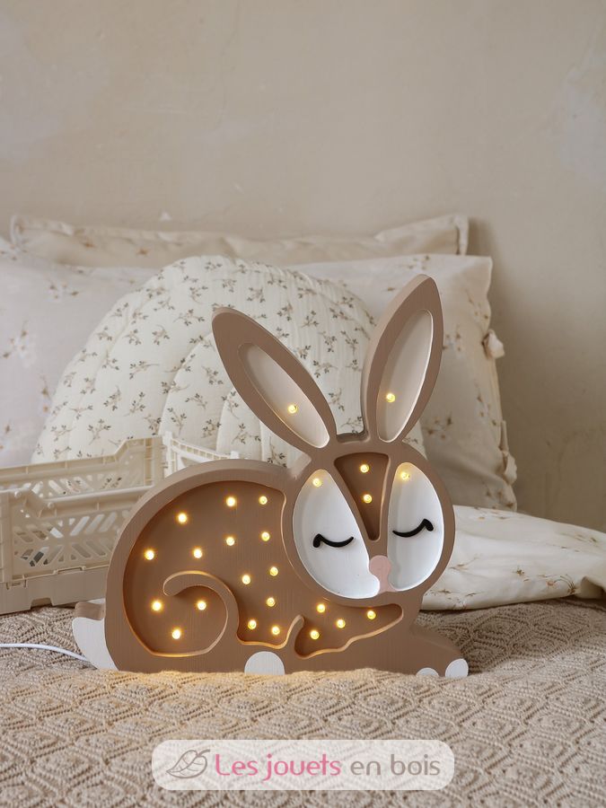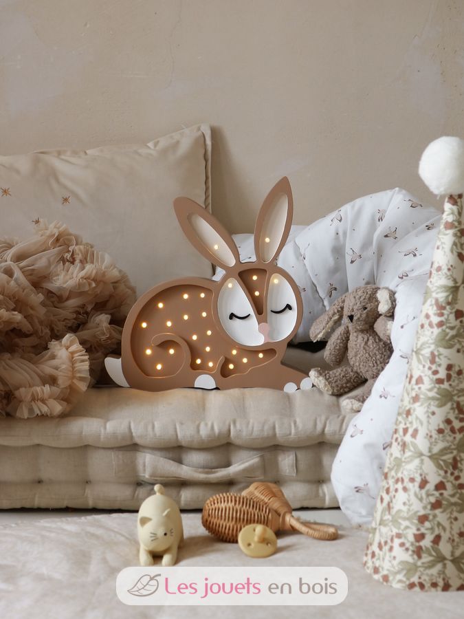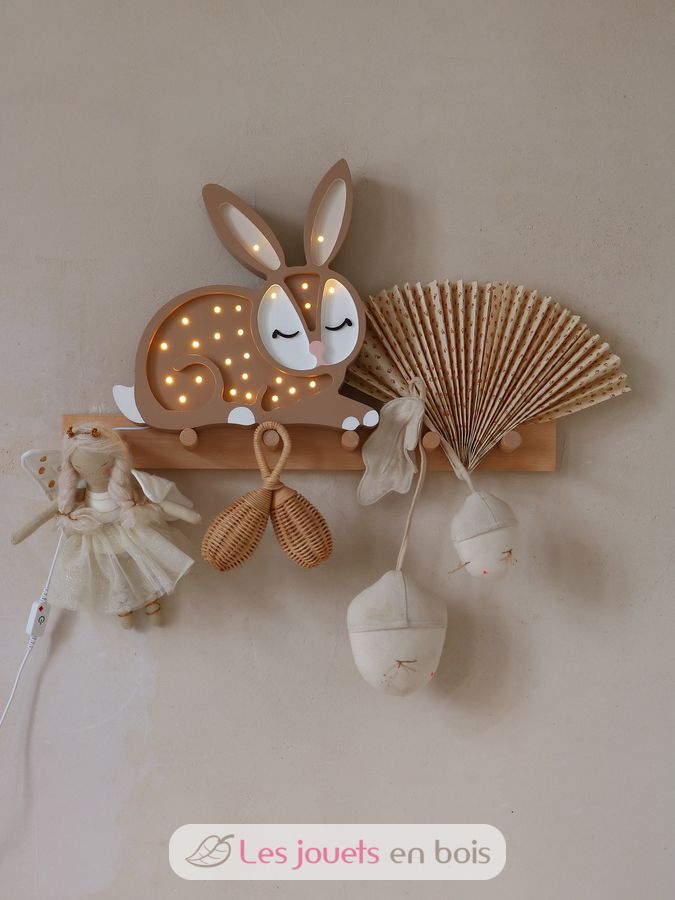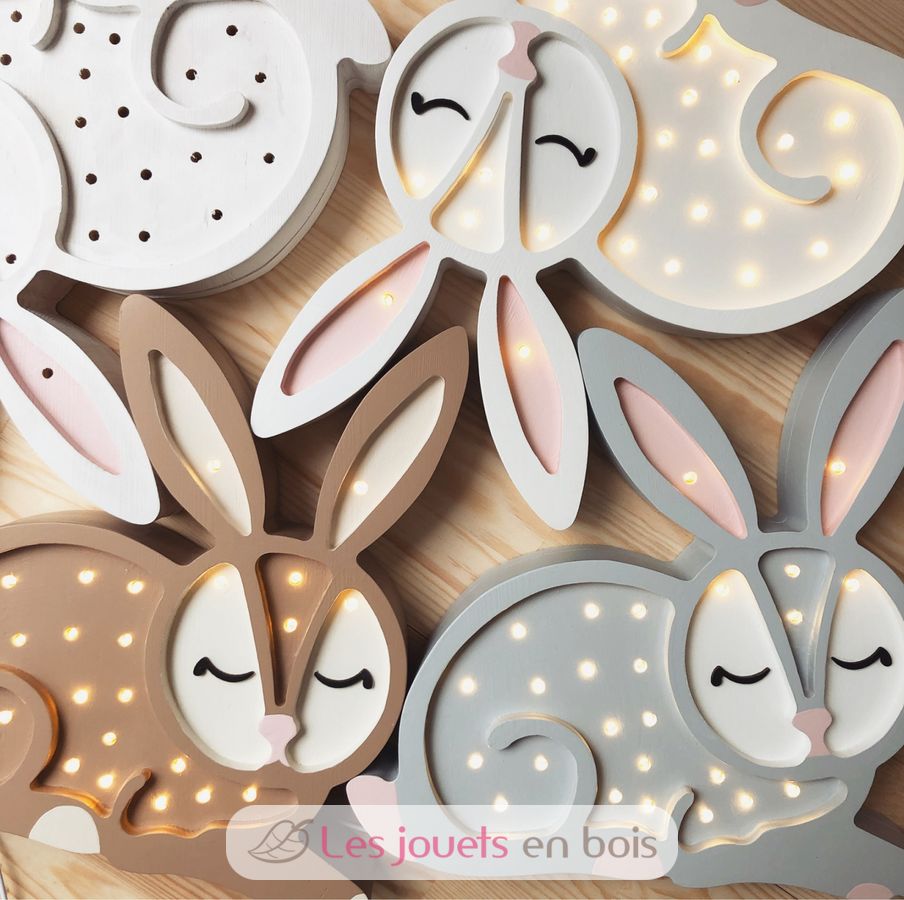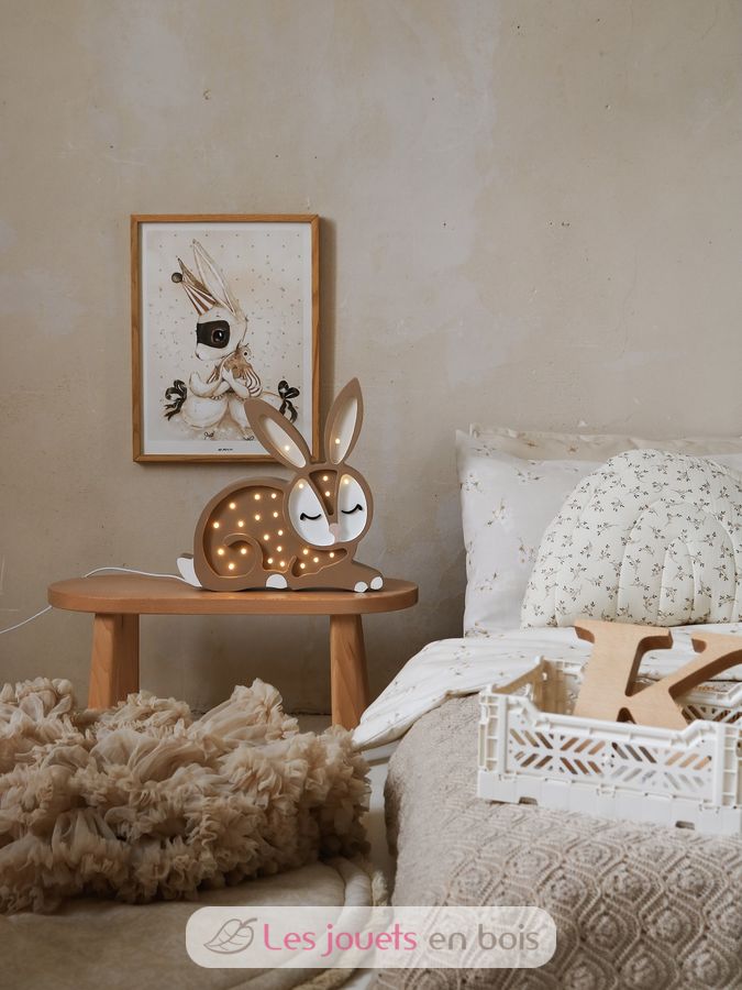Adorabile lampada notturna in legno per bambini a forma di coniglio.
