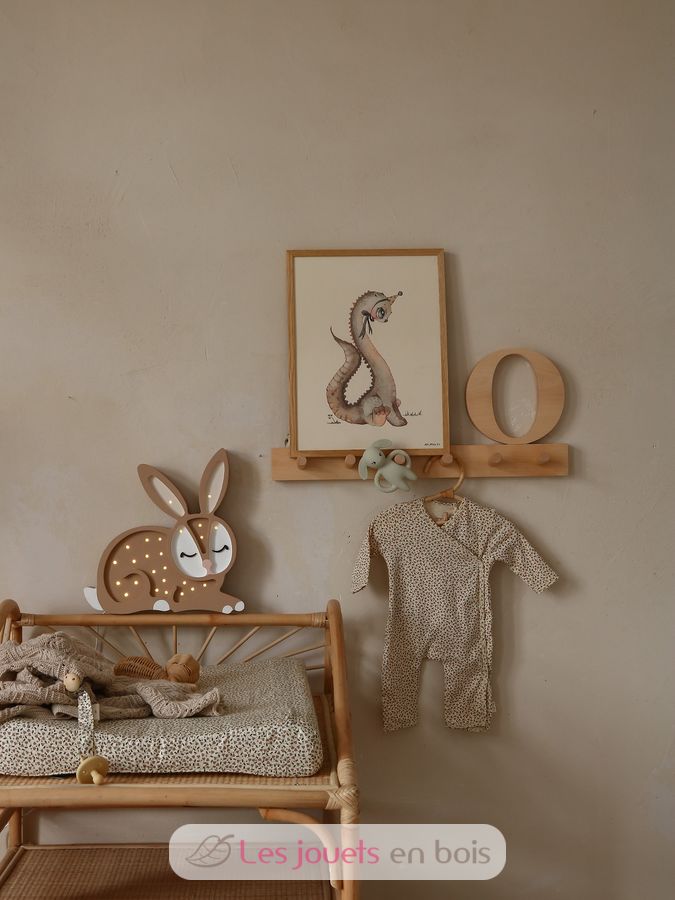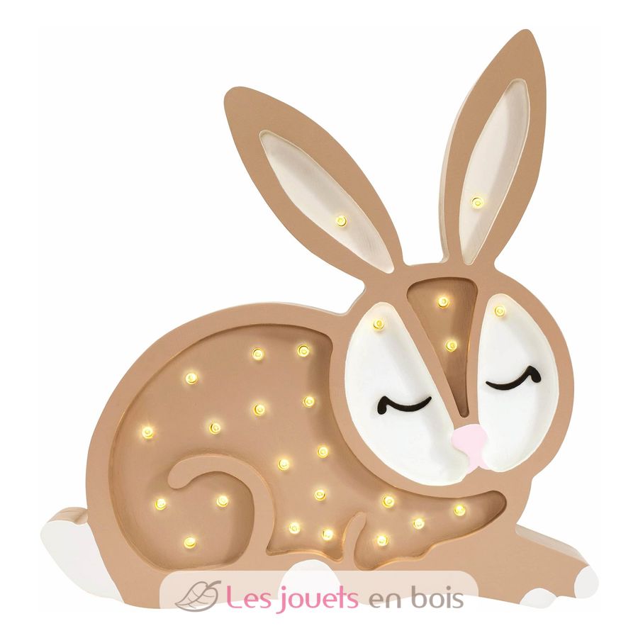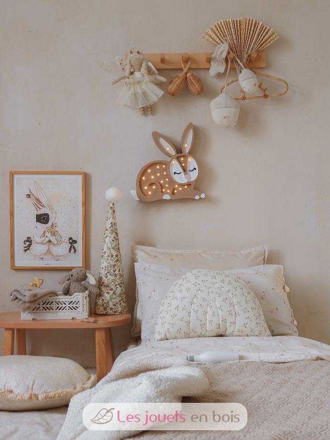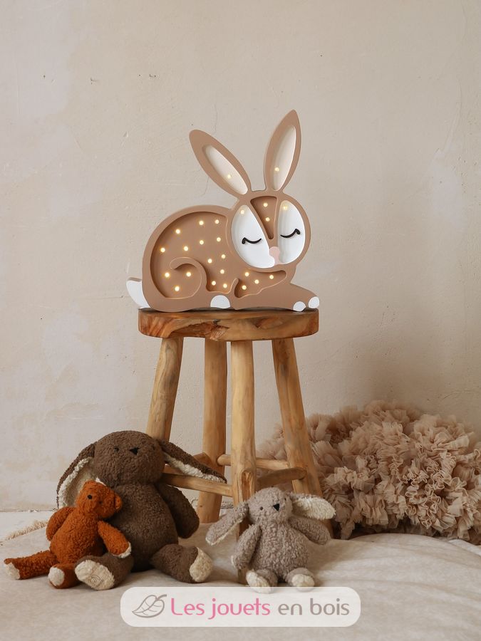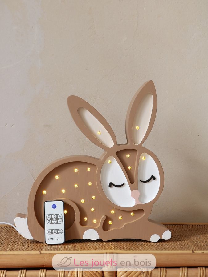Adorabile lampada notturna in legno per bambini a forma di coniglio.