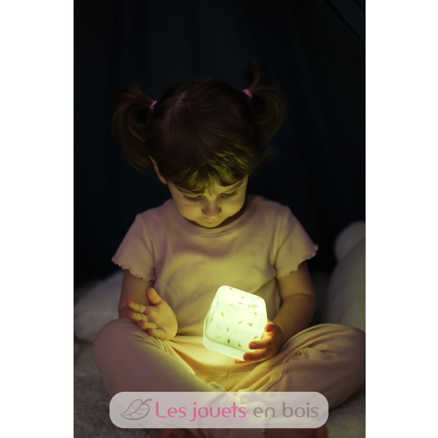 La luce notturna da parete o mobile Cube b è la compagna luminosa delle notti dolci e serene, fin dalla nascita. È realizzato al 30% in plastica riciclata e si ricarica direttamente dalla rete elettrica.