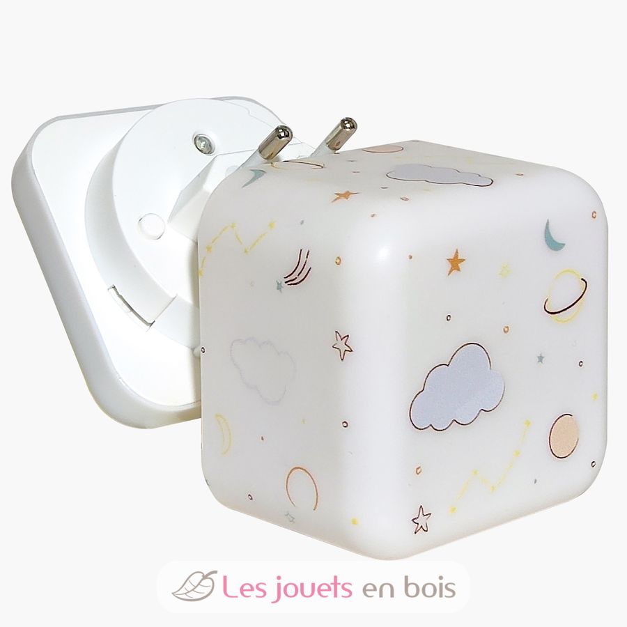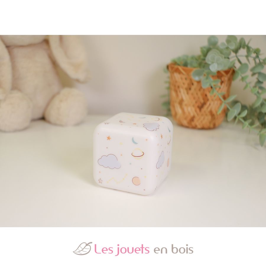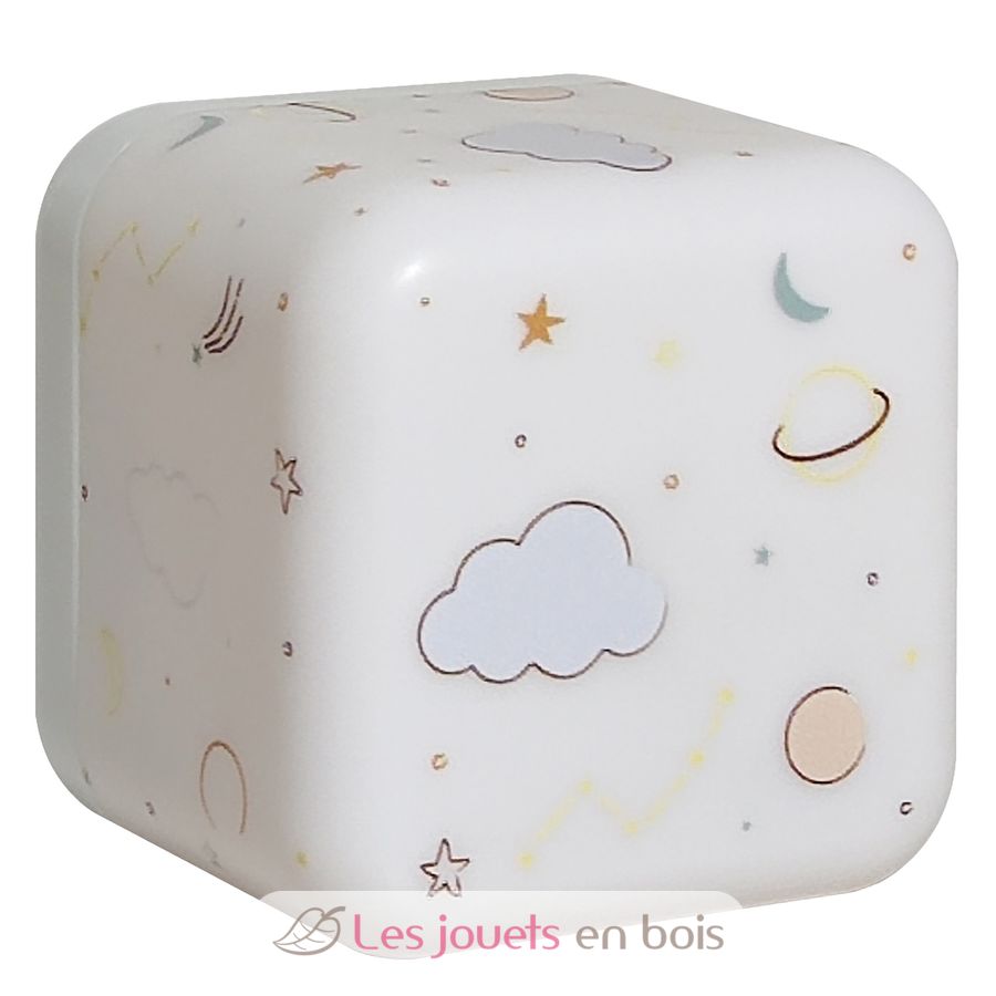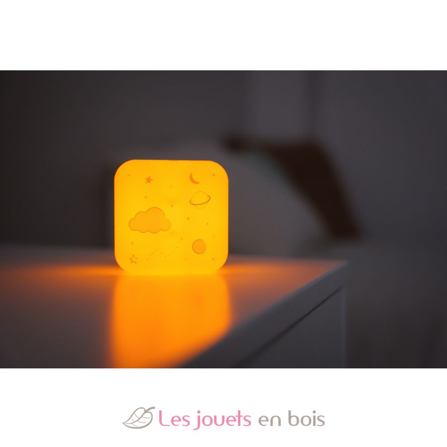 La luce notturna Cube b Spazio di Cloud b è una luce notturna multifunzione ricaricabile che emette una luce soffusa per rassicurare il tuo bambino prima di andare a dormire.