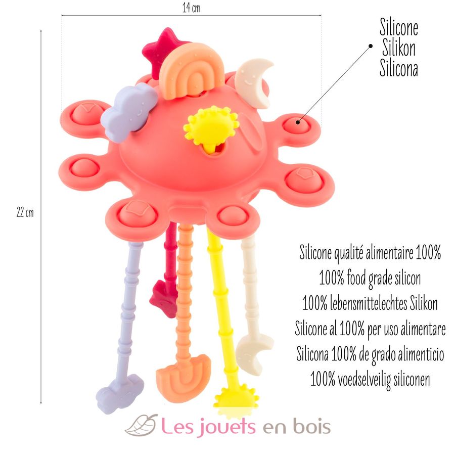 Questo giocattolo in silicone è stato creato appositamente per aiutare lo sviluppo sensoriale dei bambini. Realizzato in silicone alimentare.