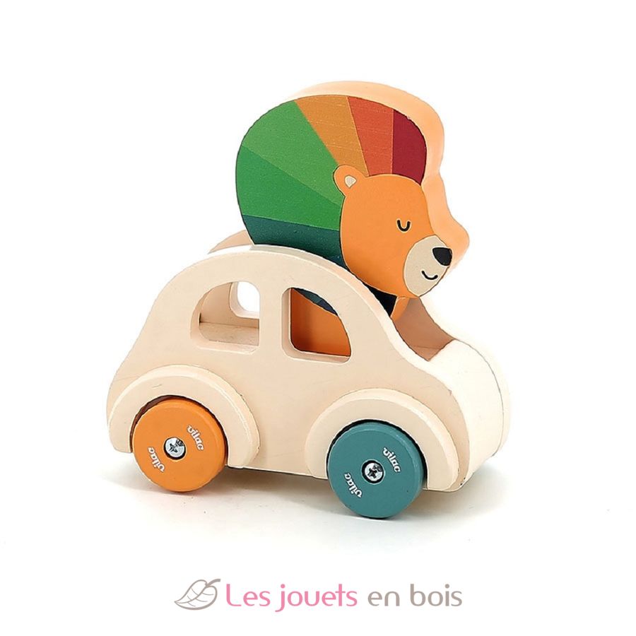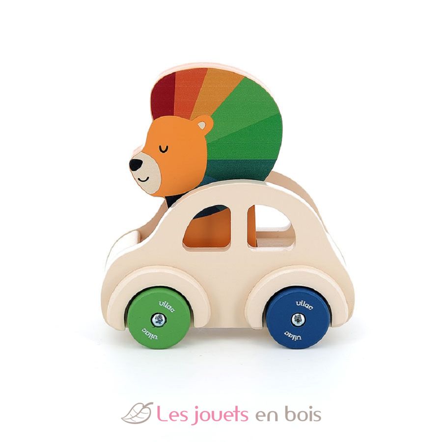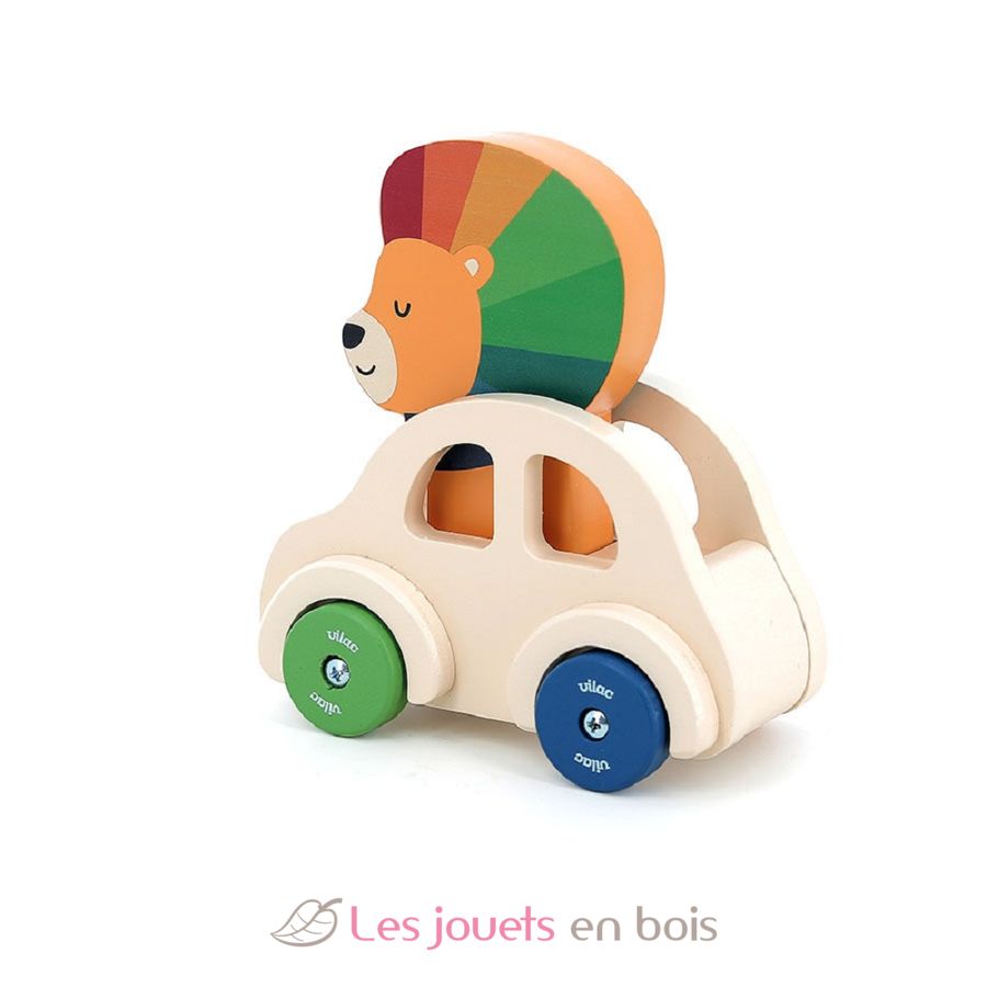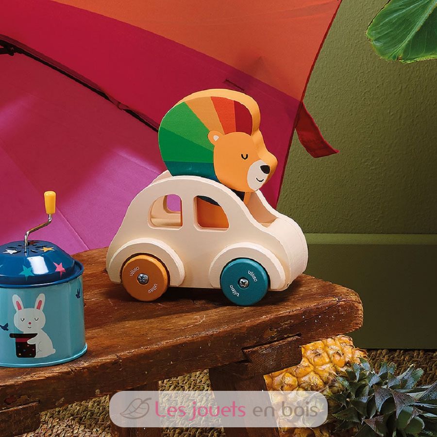 Macchina con clacson Il Leone, un giocattolo da spingere in legno realizzato da Vilac.