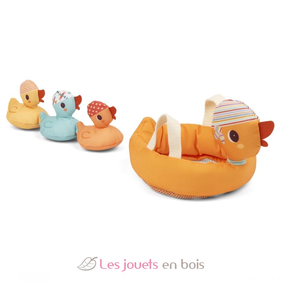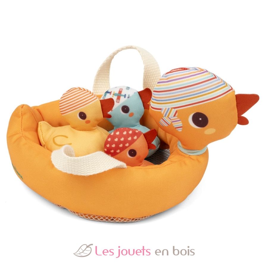 Si tratta di un giocattolo magnetico per il bagnetto: in questo modo, le tre paperelle possono galleggiare separatamente o insieme, una dietro l'altra. Non ha nemmeno paura della corrente! Come i bambini, i nostri paperolini amano la loro libertà, ma anche ritrovare se stessi e seguire i loro fratelli ovunque. Ogni anatroccolo è di un colore diverso e sfoggia una simpatica bandana fantasia. Ma questa non è la loro unica particolarità! Sotto ognuno di essi, un numero nascosto è tutto da scoprire: perfetto quando si inizia a familiarizzare con i numeri. Questo giocattolo educativo da bagno non sarebbe lo stesso senza mamma anatra. Galleggia anche sull'acqua e accoglie i suoi piccoli sul dorso fatto di una rete: molto pratico anche per un'asciugatura ottimale della vasca. Dotato di maniglie, è facilissimo da trasportare dentro e fuori dal bagno! Con questo giocattolo da bagno a forma di anatra, il bambino viene intrattenuto dai coloratissimi anatroccoli che fluttuano felici intorno a lui, in modo che il momento del bagnetto sia all'insegna del relax e del risveglio sensoriale.