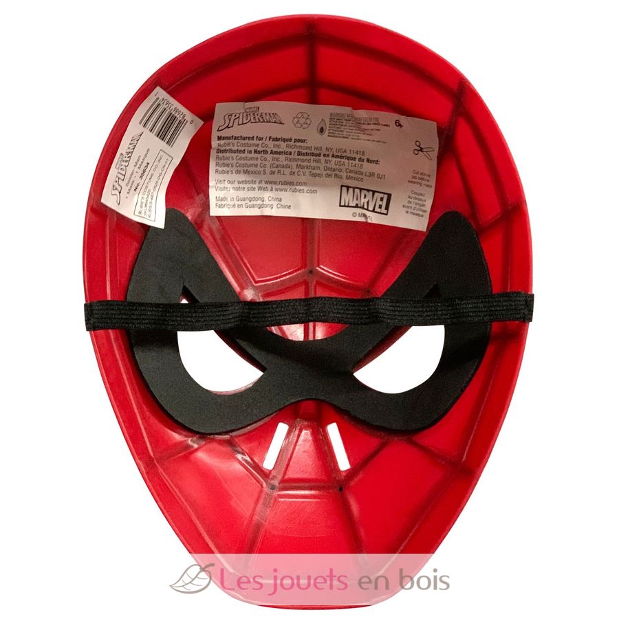 Questa maschera per bambini è realizzata in PVC rosso e nero con l'immagine del supereroe Spider-Man. Presenta un elastico con chiusura a strappo sul retro e aperture per occhi e naso.