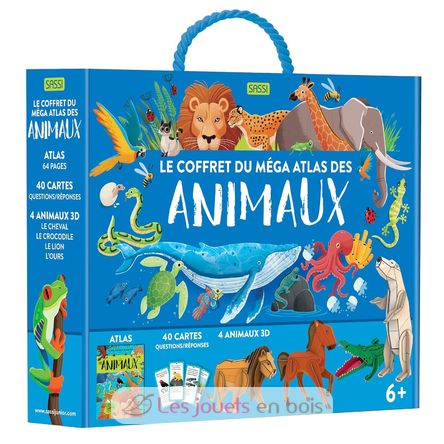 Vai a scoprire gli animali. Leggi il libro (versione francese), rispondi alle domande sulle 40 carte domanda-risposta sugli animali che popolano il nostro pianeta e costruisci 4 modelli 3D (coccodrillo, leone, orso e cavallo).