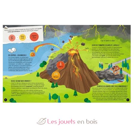 Vai alla scoperta dei vulcani! Leggi il libro (versione francese), rispondi alle domande sulle 40 carte domande e risposte, costruisci il puzzle da 500 pezzi e assembla le 20 sagome.