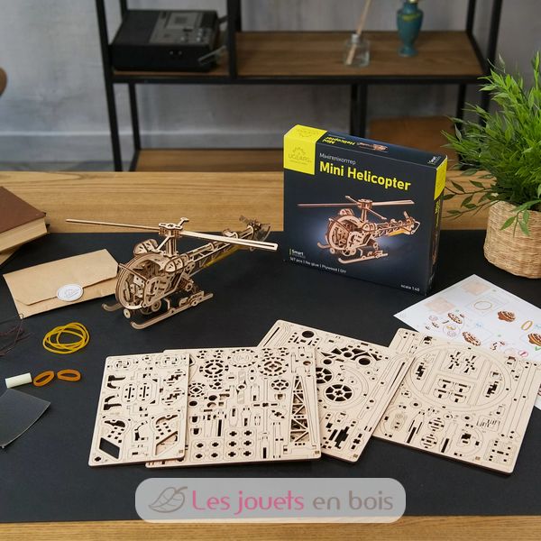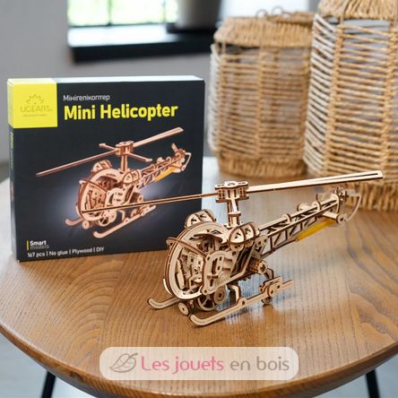 Mini elicottero, puzzle 3D meccanico in legno realizzato da Ugears.