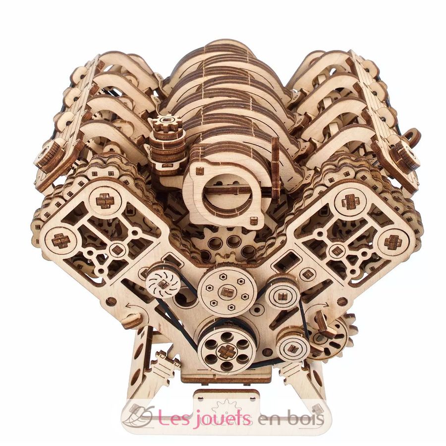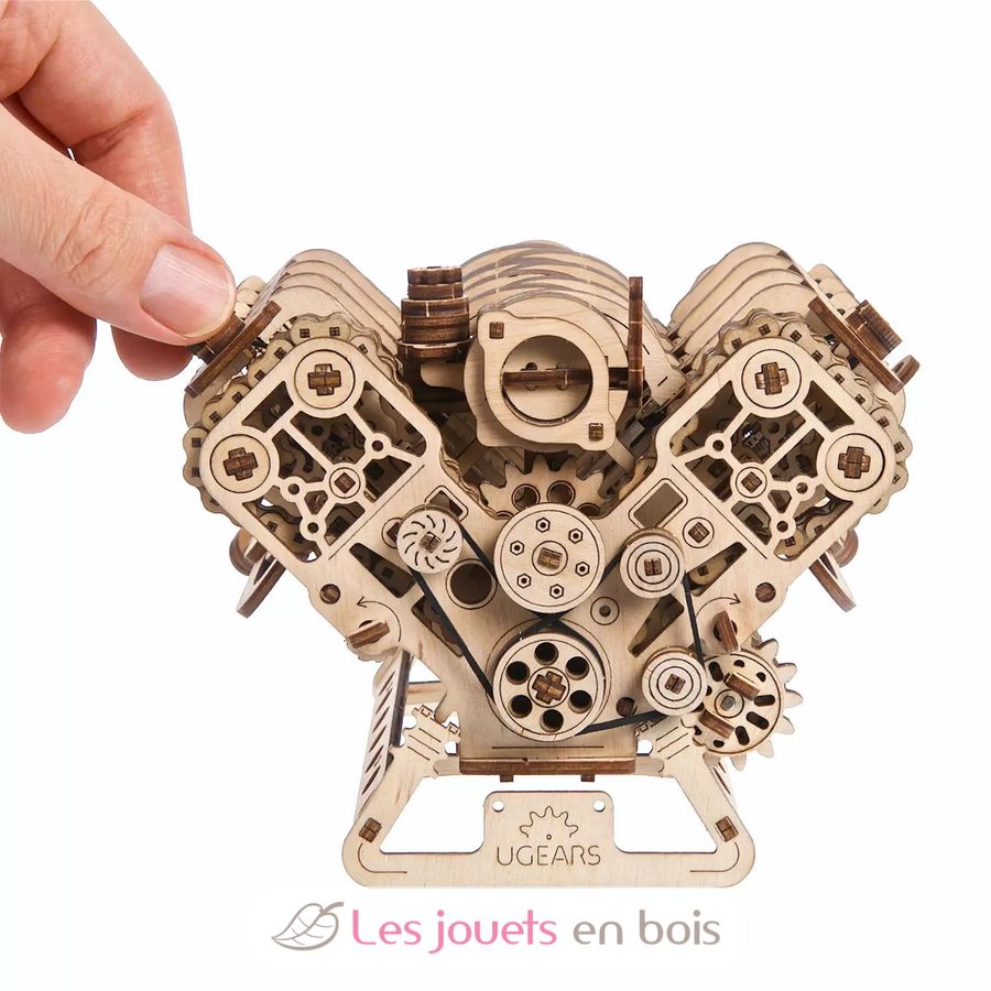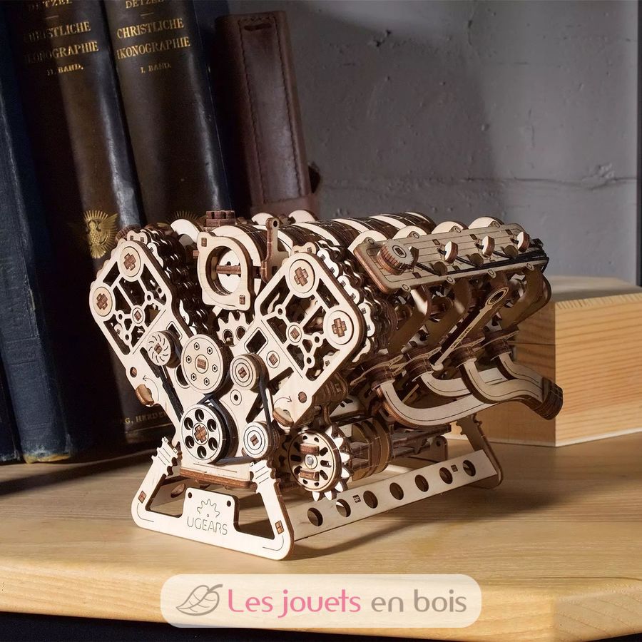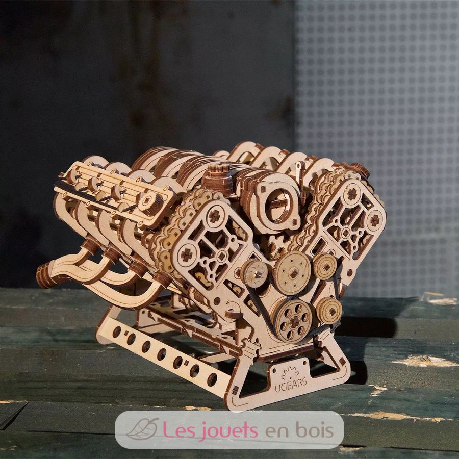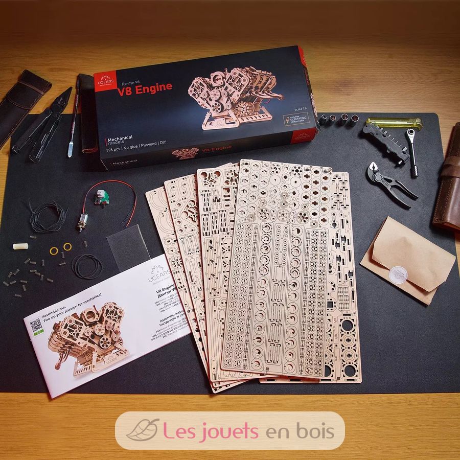 Motore V8, puzzle 3D meccanico in legno realizzato da Ugears.