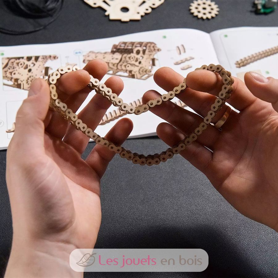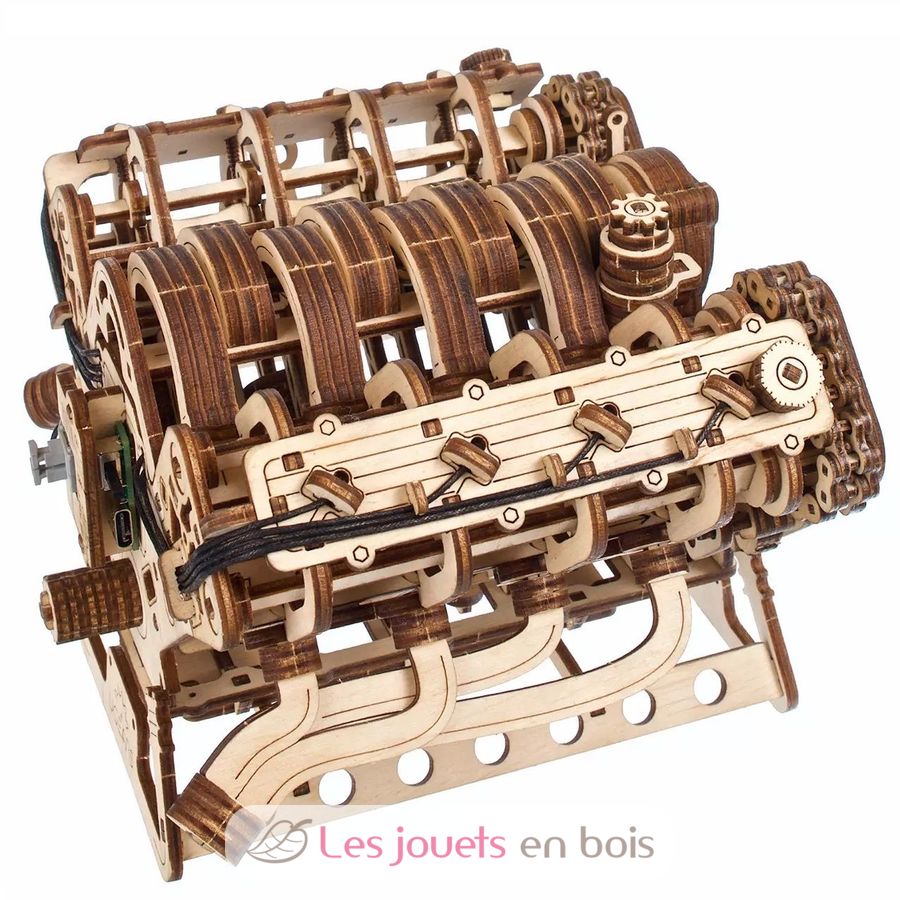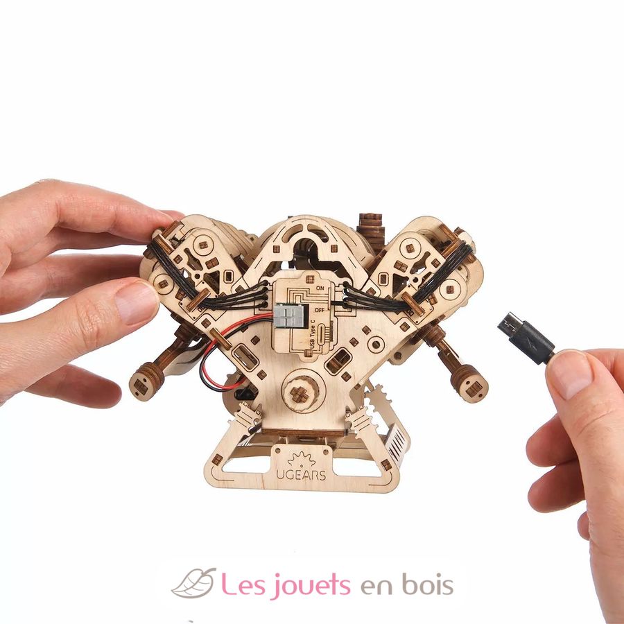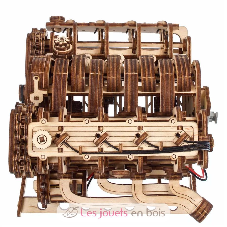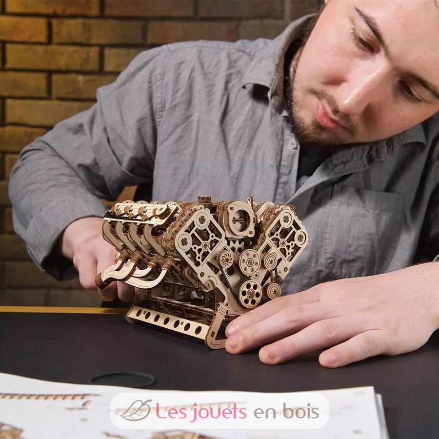 Motore V8, puzzle 3D meccanico in legno realizzato da Ugears.