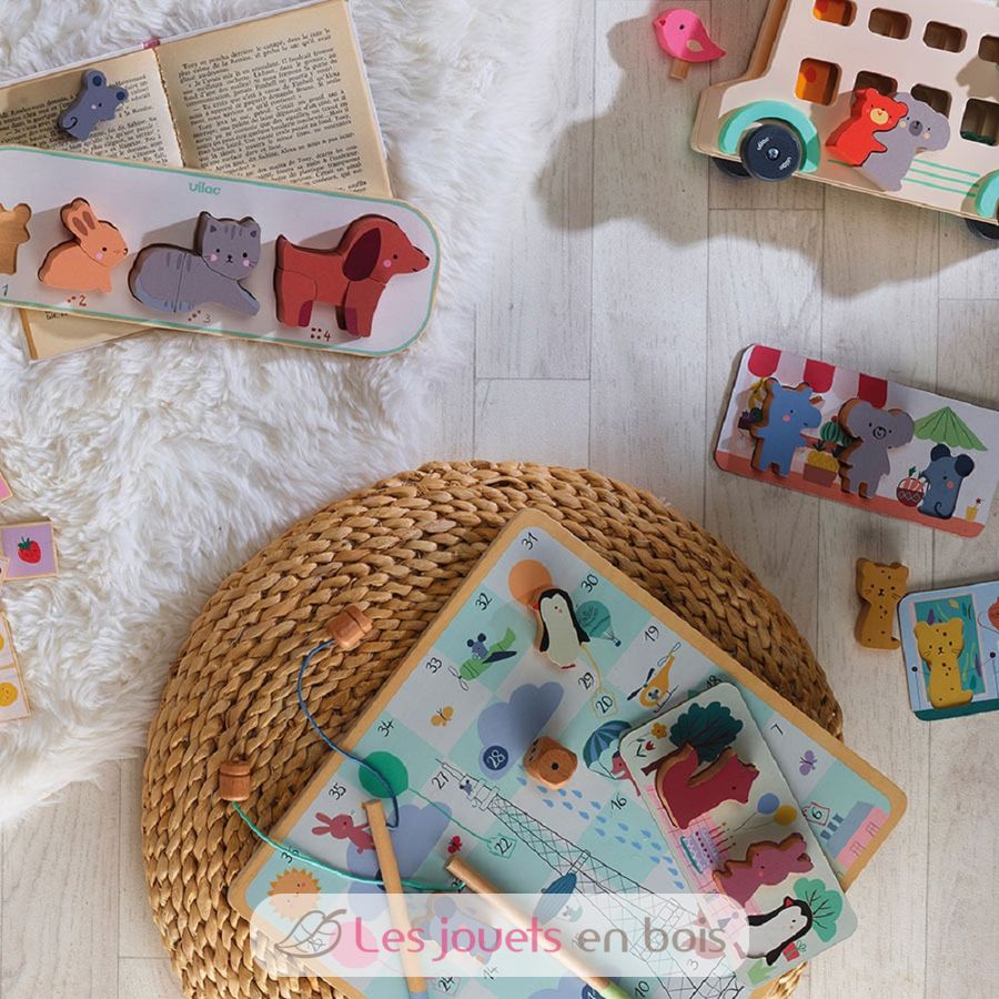 Gli adorabili animali di legno di questo set multigioco, illustrato da Sarah Betz, delizieranno il tuo bambino a partire dai 2 anni!