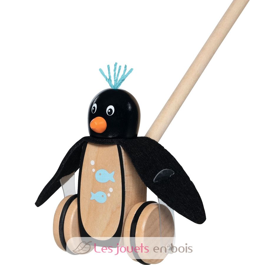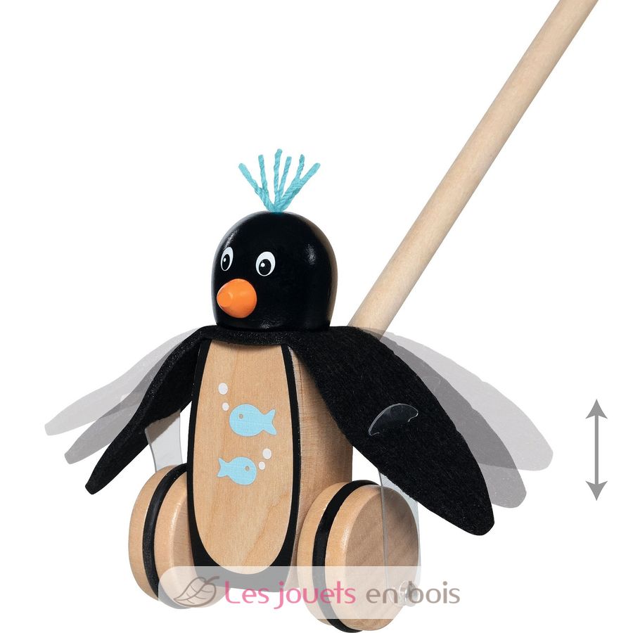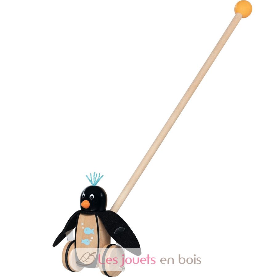 Il pinguino da spingere, un giocattolo in legno ideale per accompagnare il tuo bambino nei suoi primi passi a partire dai 18 mesi.