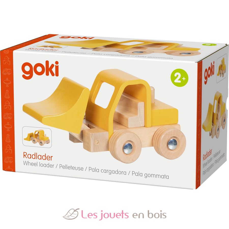 Pala gommata giallo, veicolo in legno della marca Goki.