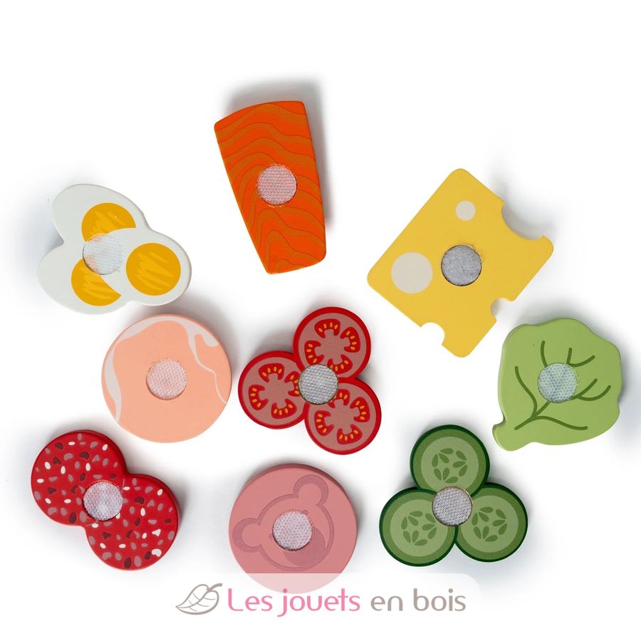 Stimola la creatività dei tuoi bambini con questo set per sandwich. Realizzato in legno certificato FSC, questo grazioso set permette ai bambini di creare infinite combinazioni combinando una varietà di ingredienti con chiusure a strappo.