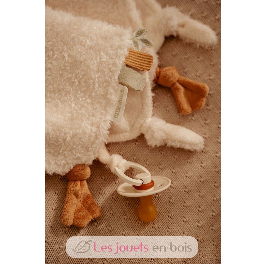 Questo panno coccolone con pecora offre tanti dettagli divertenti da scoprire. Questo panno coccolone calma e aiuta il piccolo ad addormentarsi.
