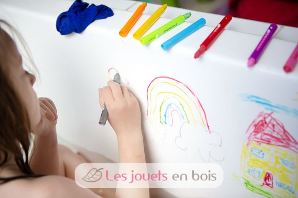 Questi pastelli da bagno dai colori vivaci hanno le dimensioni perfette per le manine dei più piccoli e sono realizzati appositamente per essere utilizzati su superfici lisce e bagnate come piastrelle del bagno e vasche da bagno. Sono facili da pulire, lavandoli con un panno umido (incluso).