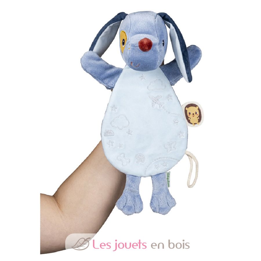 Adatto fin dalla nascita, questo peluche per cani Jules ha tutto per piacere. È prima di tutto un compagno costante per il bambino, molto gentile e con un viso sorridente e amichevole. Il bambino porta il suo peluche blu ovunque e rimane sicuro e rilassato per tutto il giorno.