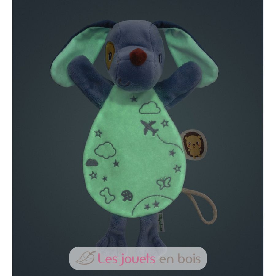 Peluche fosforescente Jules il cane, amico della notte di Lilliputiens.