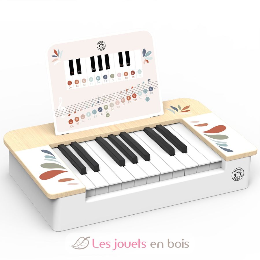 Pianoforte giocattolo, un giocattolo musicale in legno per bambini del marchio Speedy Monkey.