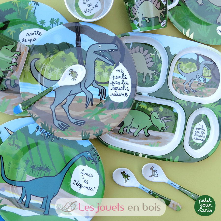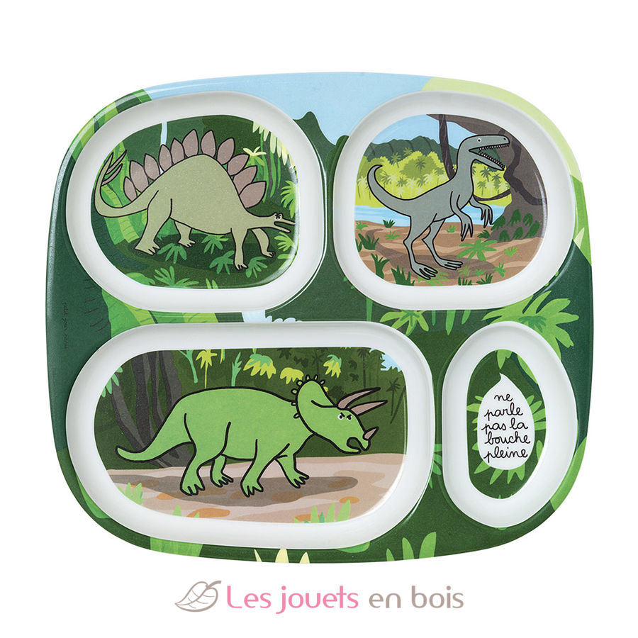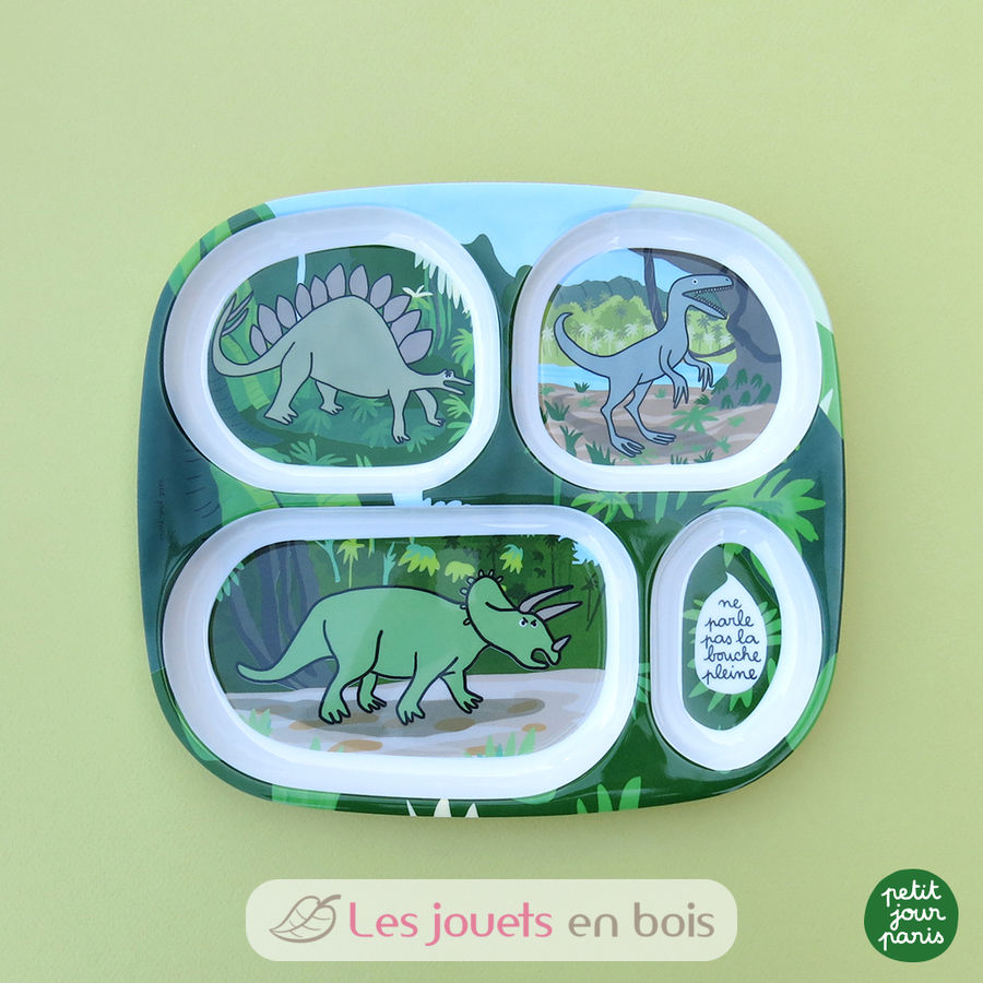 Vassoio piatto con scomparti dinosauri per bambini del marchio Petit Jour.