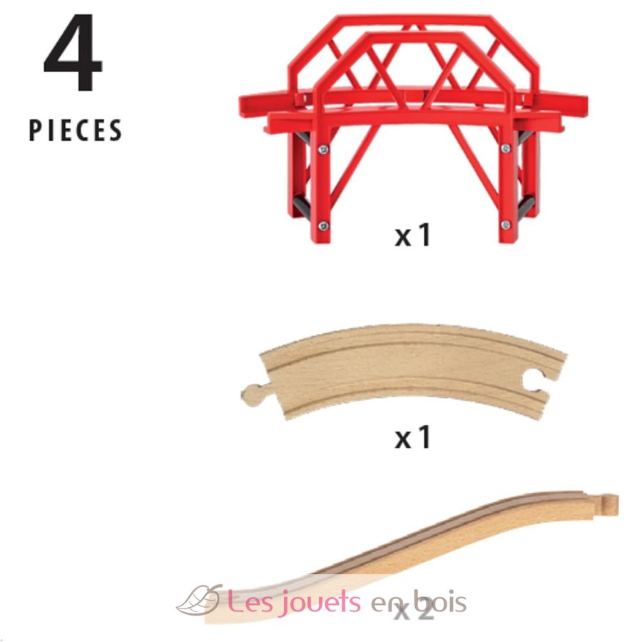 Ponte curvo a marchio Brio con i suoi due binari ascendenti. Riferimento 33699.