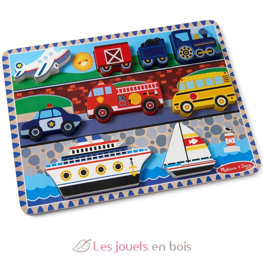 Puzzle con pezzi grandi in legno Veicoli, un puzzle in legno di Melissa e Doug.