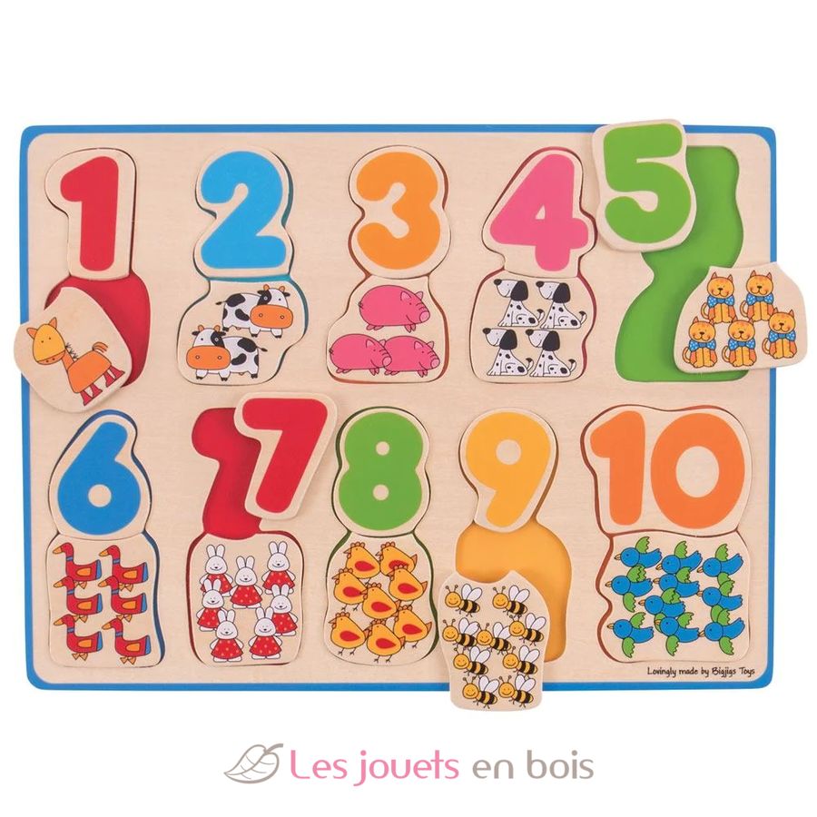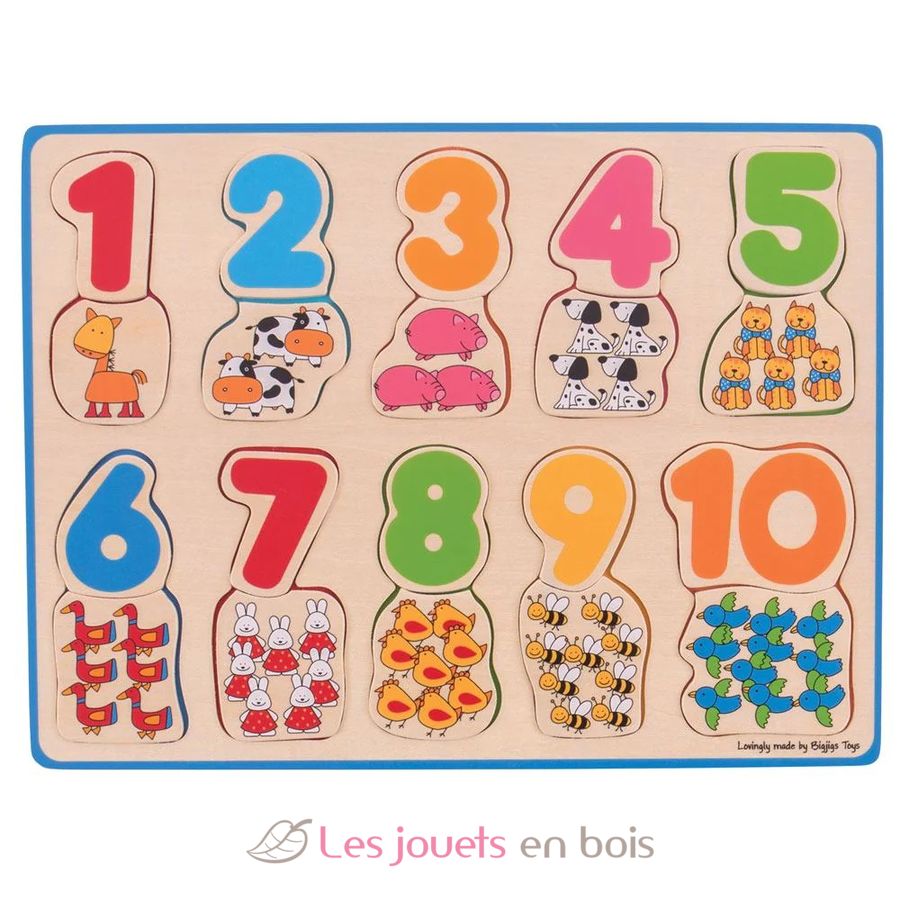 Con questo puzzle in legno il tuo bambino potrà contare gli animali per associarli ai numeri corretti.