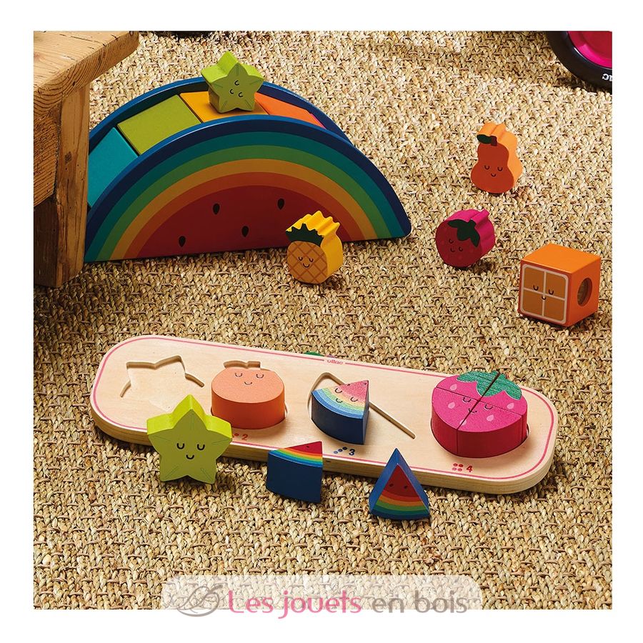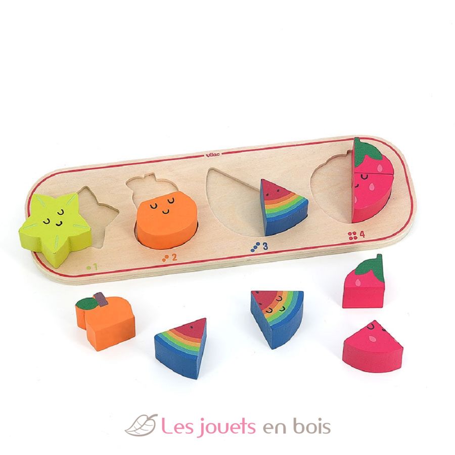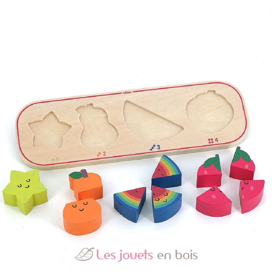 Puzzle ad incastro Sto imparando a contare la frutta, un puzzle in legno di Vilac.