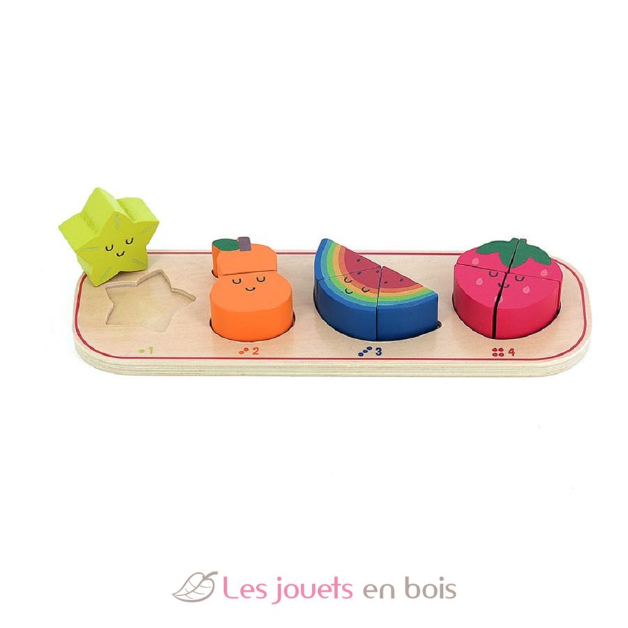 I più piccoli adoreranno comporre questo puzzle in legno rimettendo insieme i 10 pezzi nella posizione corretta. Questo gioco di attività in legno è ideale per introdurre gradualmente i numeri e il conteggio. La frutta possono essere scomposti in 1, 2, 3 o 4 pezzi e incastrati sulla tavoletta di legno.