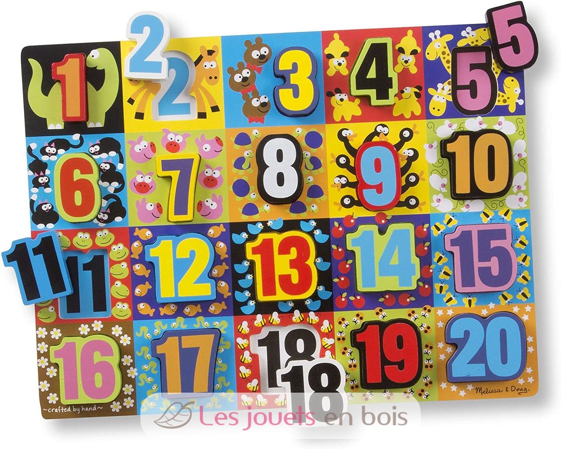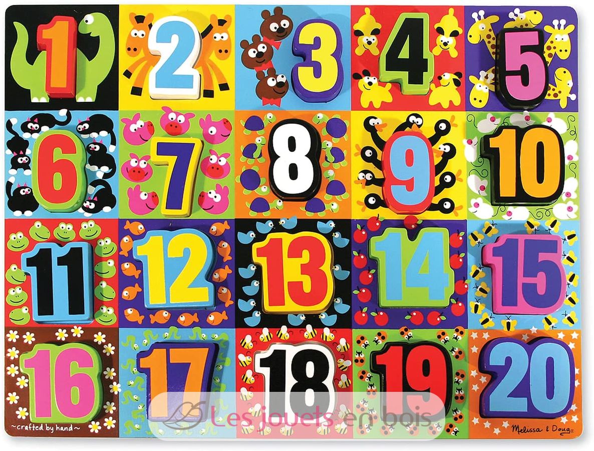 Un puzzle con 20 pezzi di legno spessi e facili da afferrare per imparare a contare fino a 20.