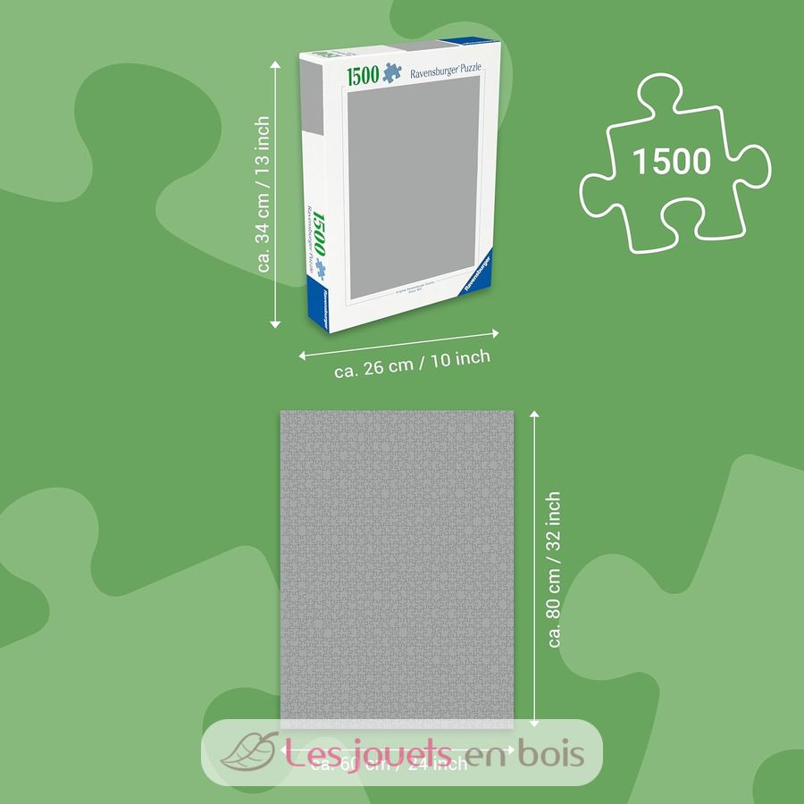 Questa scatola contiene un puzzle da 1500 pezzi. Per i puzzle esperti, il formato da 1000 pezzi è ideale per godersi l'attività del puzzle, favorevole al relax e al relax. Ogni pezzo ha una forma unica e permette un perfetto assemblaggio dell'immagine scelta. Dimensioni del puzzle: 80 x 60 x 0,2 cm.