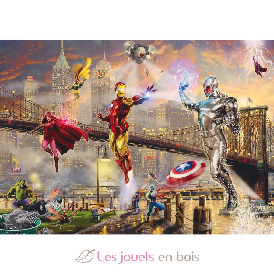 Viaggia nel fantastico mondo degli eroi Marvel con questa raccolta di puzzle illustrati da Thomas Kinkade, famoso pittore impressionista americano.