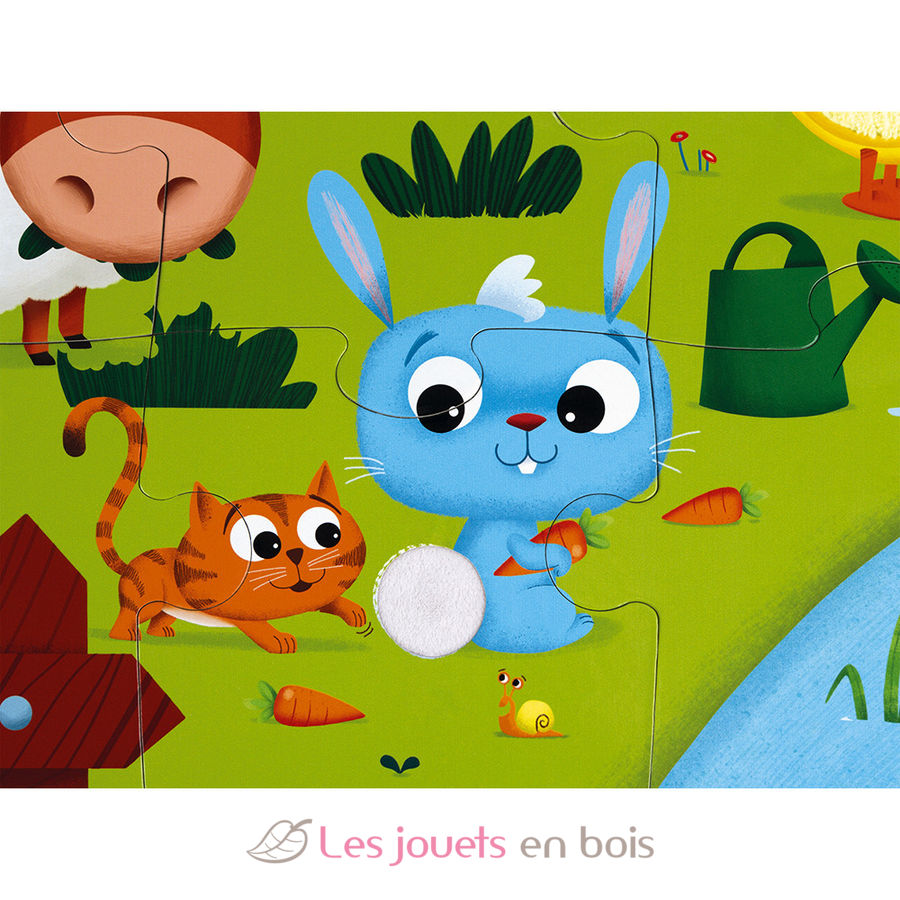 Puzzle Tattile Gli animali della fattoria 20 pezzi del marchio Janod. Riferimento J02772.