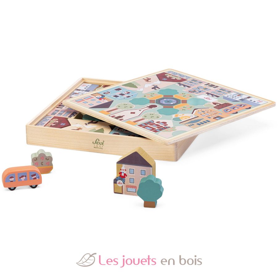 Questo giocattolo, sia come puzzle in legno che come play set, permette di ricreare il villaggio di Ortisei, un piccolo paese delle Dolomiti, dove è nato il marchio Sevi.
