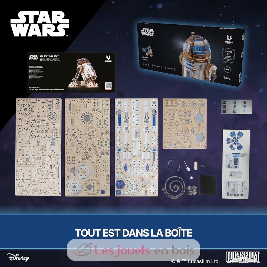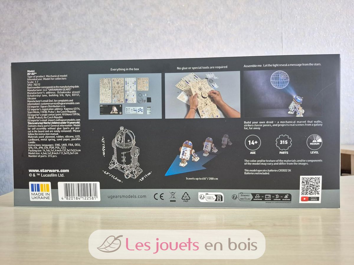 R2-D2 Star Wars, puzzle 3D meccanico in legno realizzato da Ugears.