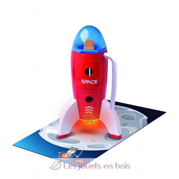 Premere il pulsante per avviare il conto alla rovescia e illuminare il razzo per un imminente decollo (effetti sonori e luminosi).