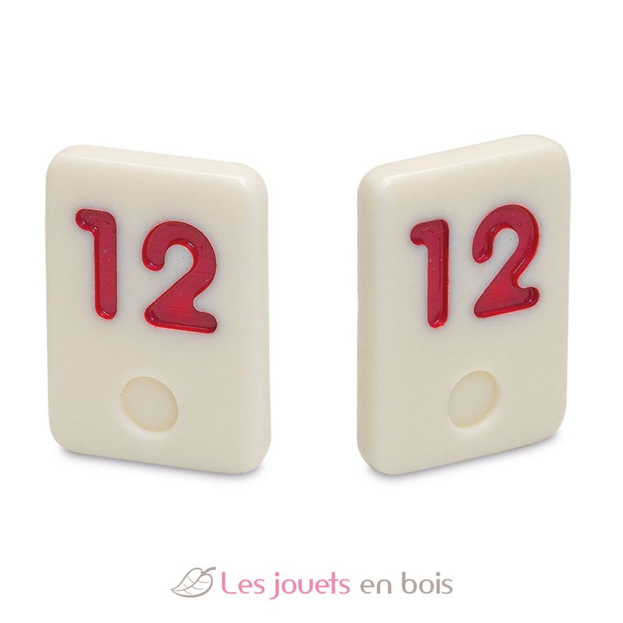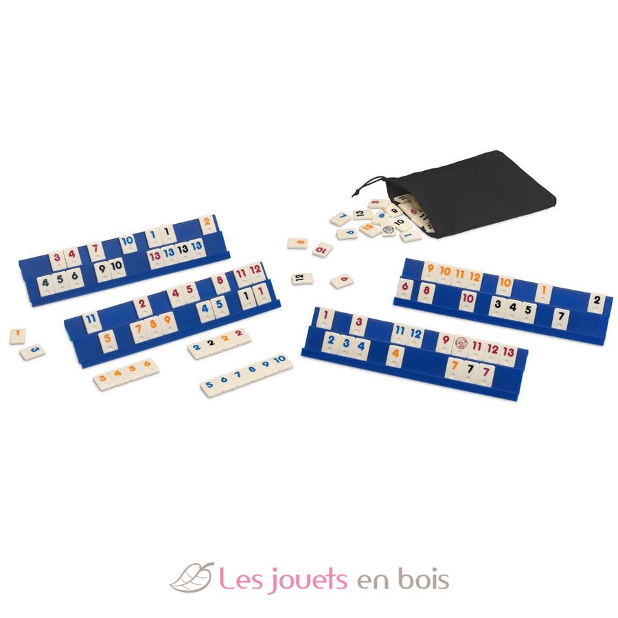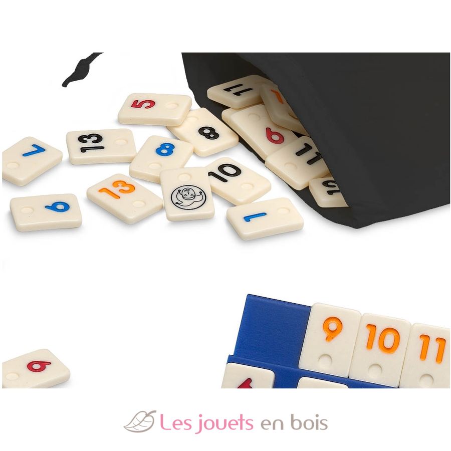 Rummi o gioco del ramino o gioco tradizionale turco Okey. La differenza è che non si gioca con le carte, ma con le pedine, il che rende il gioco più "durevole" e più facile da usare per i più piccoli. Questo tradizionale gioco da tavolo permette di lavorare su associazioni di numeri, combinazioni, strategia... È un gioco che sviluppa le capacità intellettuali. Scopo del gioco: liberarsi di tutti i pezzi formando combinazioni che associno numeri e colori.
