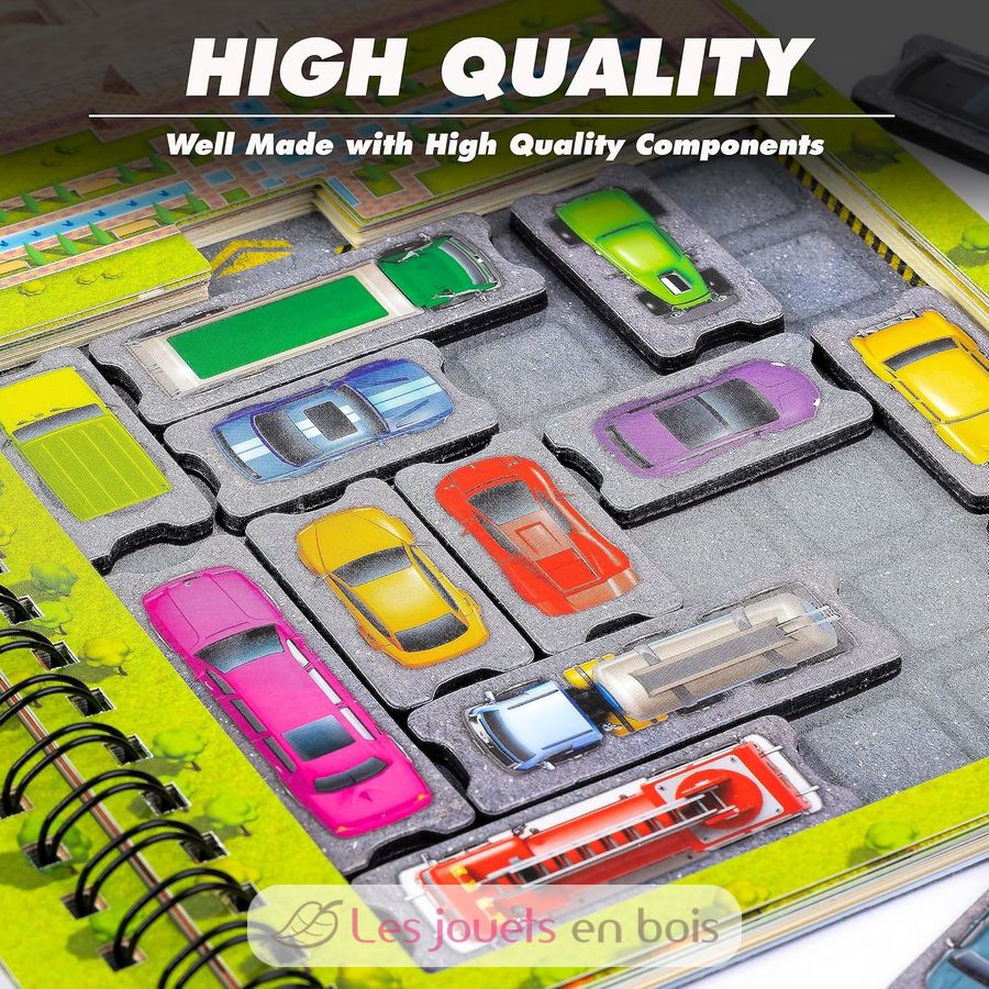 Contenuto del gioco: 15 veicoli, 1 camion dei pompieri rosso, 1 griglia di ingorgo, 40 carte sfida con la relativa soluzione, 1 spazio di archiviazione interno, una regola del gioco.
