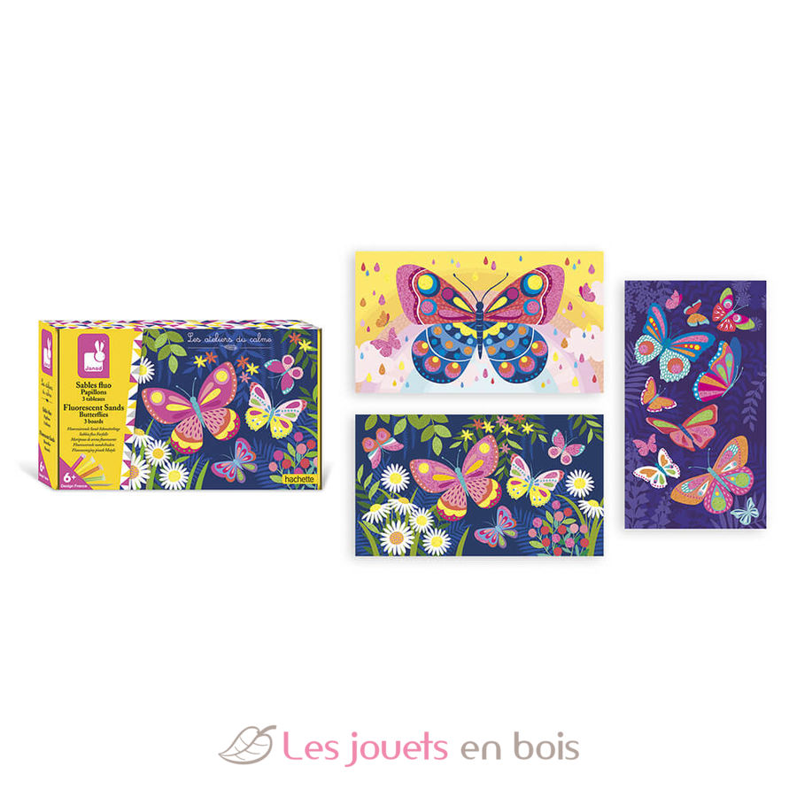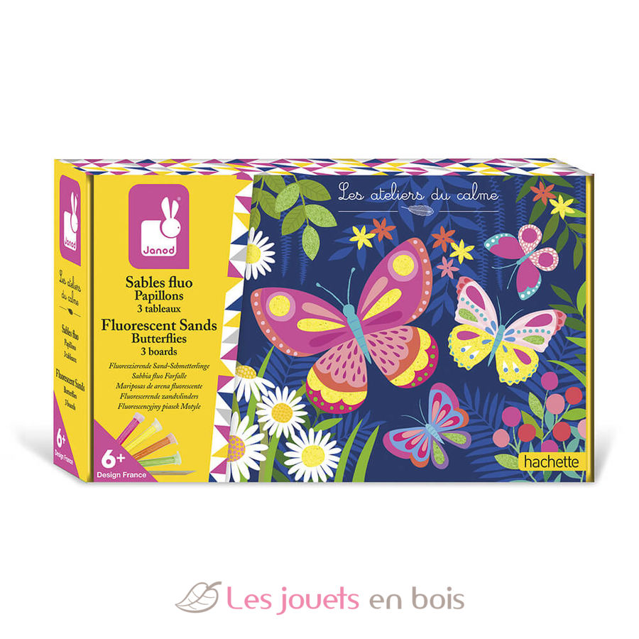 Scopri il kit creativo Sabbia fluo Farfalle di Janod, un'attività creativa con sabbia colorata per bambini dai 5 anni. Un'attività creativa che porta calma, concentrazione e serenità.