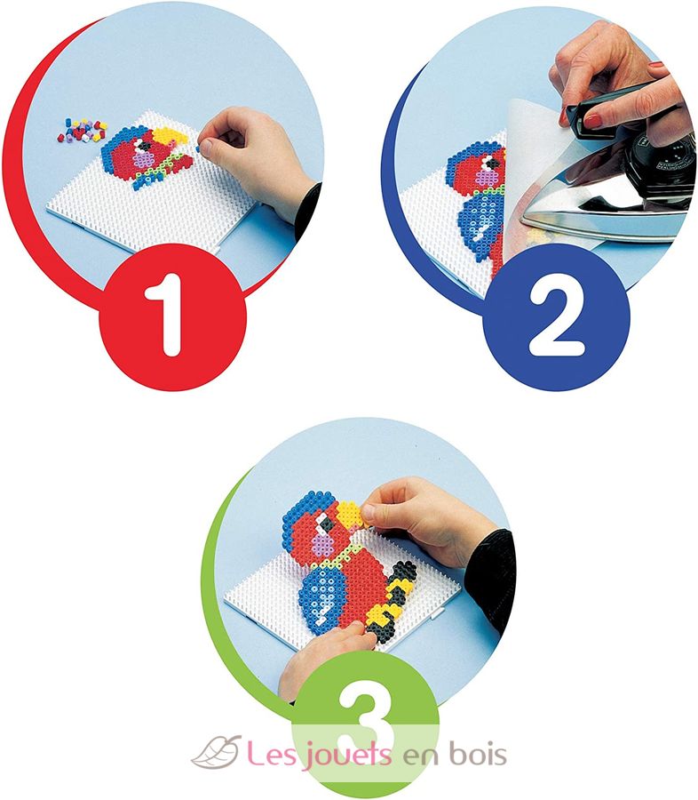 Le perline Hama possono essere utilizzate in 2 modi diversi: fissando il motivo stirando o cucendo insieme le perline.