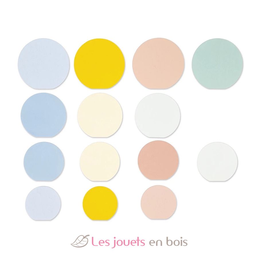 È un gioco educativo, poetico e delicato! I colori tenui, il feltro e il legno naturale conferiscono a questo discensore alto 36 cm un grande fascino.