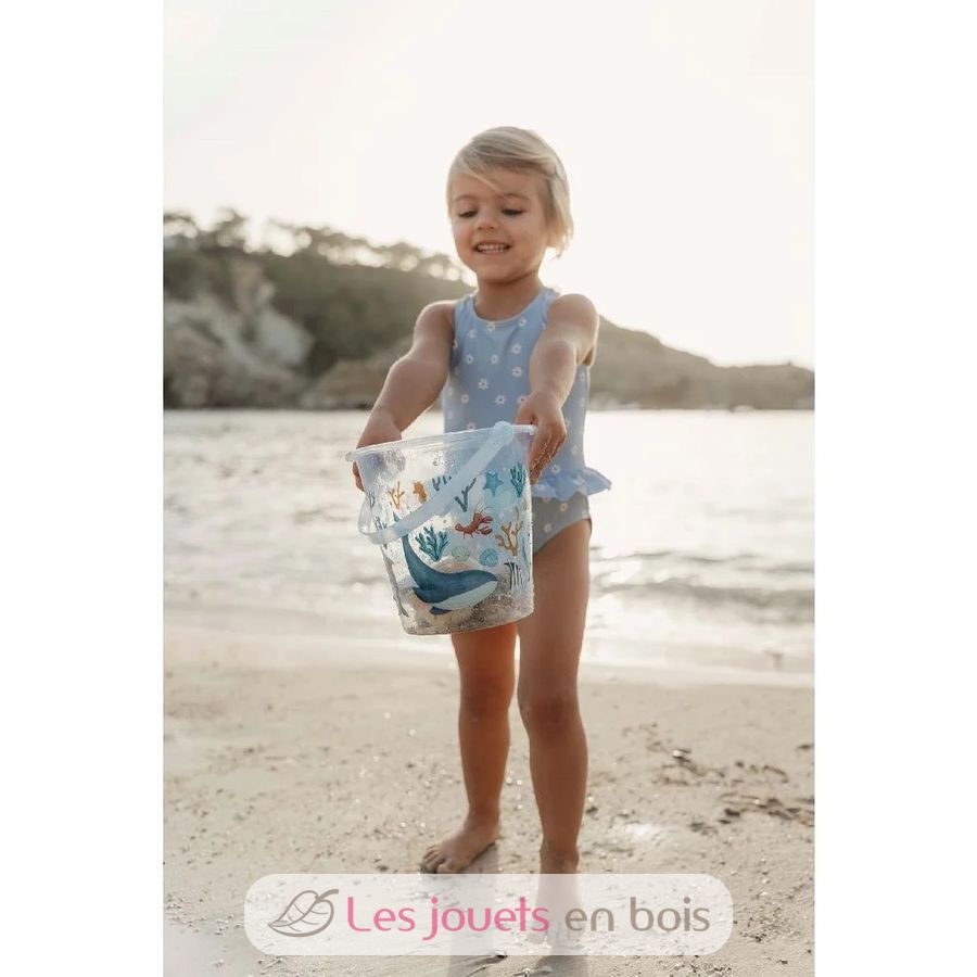 Con il suo design trasparente e le colorate decorazioni a tema marino, questo secchiello è il compagno perfetto per costruire castelli di sabbia o raccogliere l'acqua.