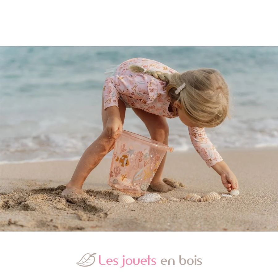 Con il suo design trasparente e le colorate decorazioni a tema marino, questo secchiello è il compagno perfetto per costruire castelli di sabbia o raccogliere l'acqua.