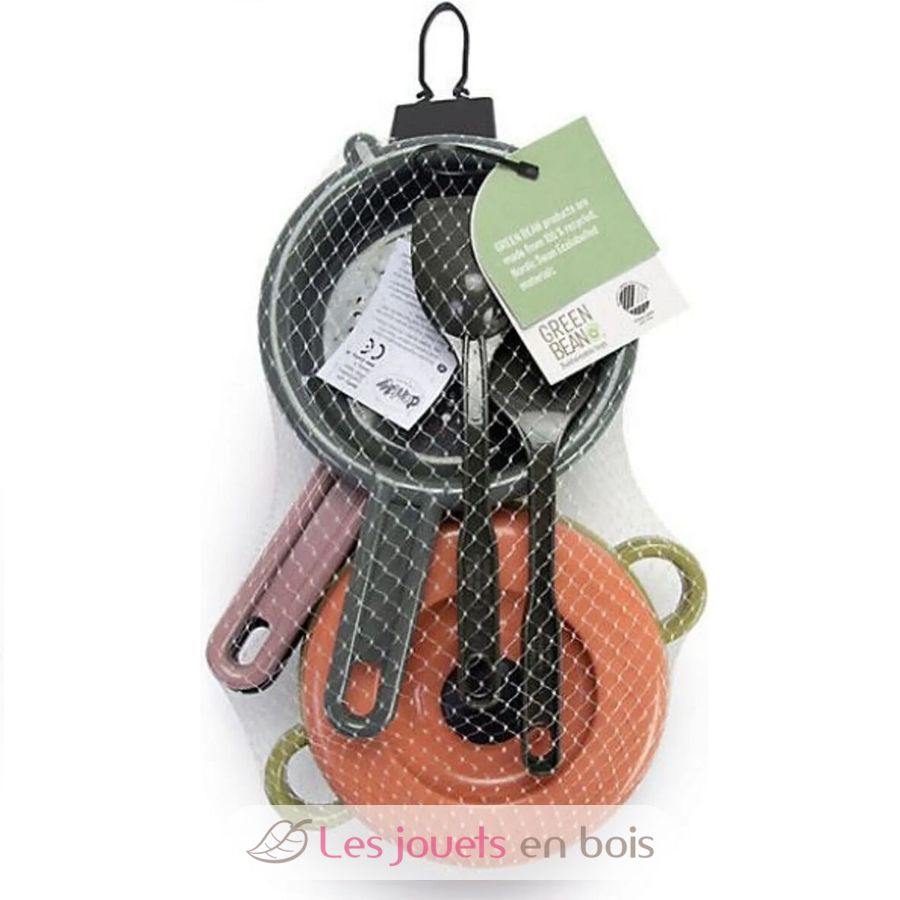 Il set fa parte della collezione Green Bean e include diverse pentole, padelle e utensili da cucina in colori vivaci che invitano a ore di gioco di ruolo creativo. I materiali resistenti e le dimensioni adatte ai bambini sono perfetti per le manine dei più piccoli, e tutti i componenti sono progettati con particolare attenzione alla sicurezza e alla durata.